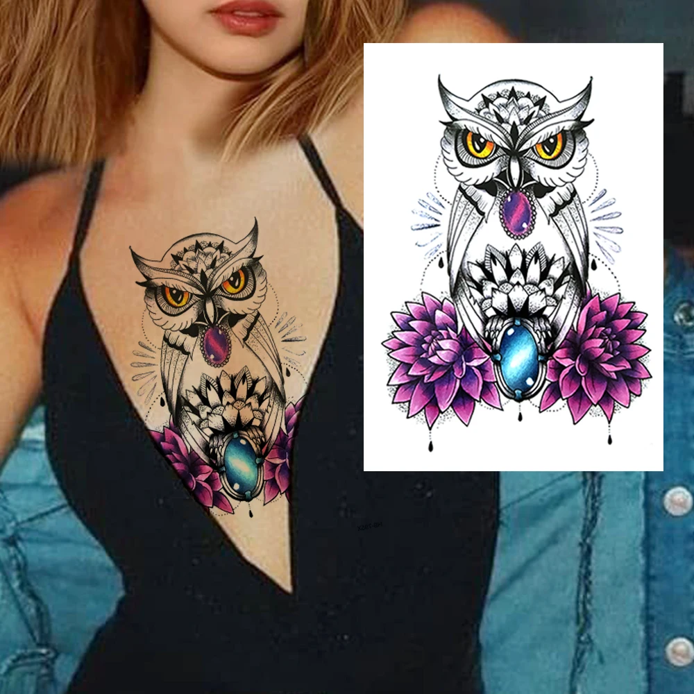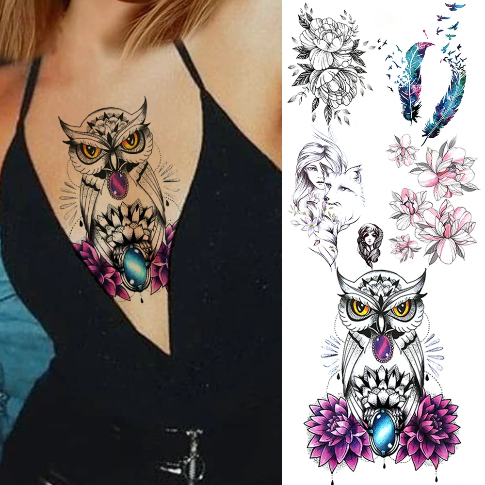 Сексуальная Сова Алмаз Временные татуировки для женщин леди реалистичные перо Dahlia лиса роза поддельные татуировки стикер 3D одноразовые татуировки искусство