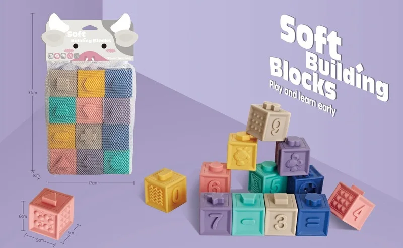 12 шт.3D сенсорный куб, выбитый ручной мяч, Детские кирпичи, Прорезыватель для ванны, сжимаемые игрушки, большие мягкие пластика, силикона, резины строительные блоки для ребенка