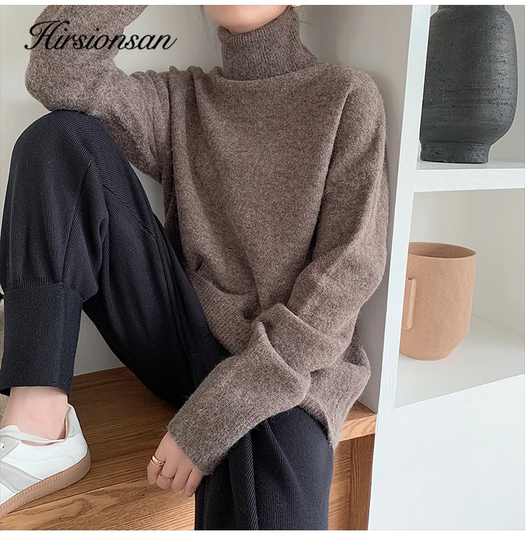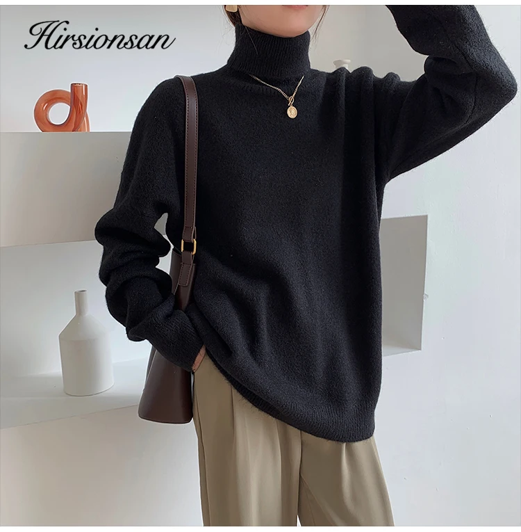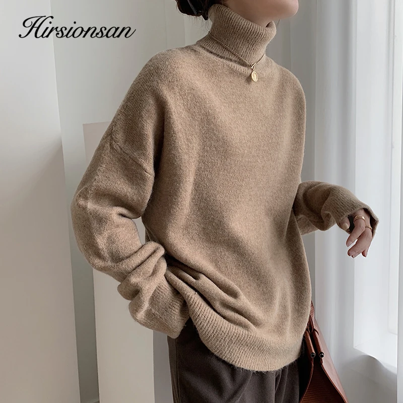 Свитер женский кашемировый с высоким воротом, теплый, свободный