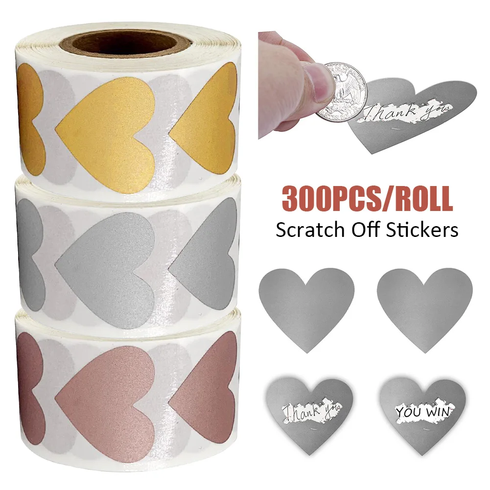 Этикетки в форме сердца, билет, свадебные портативные для скрапбукинга, скретч-наклейки, лотерея, Канцтовары, мероприятия, 300 шт.рулон