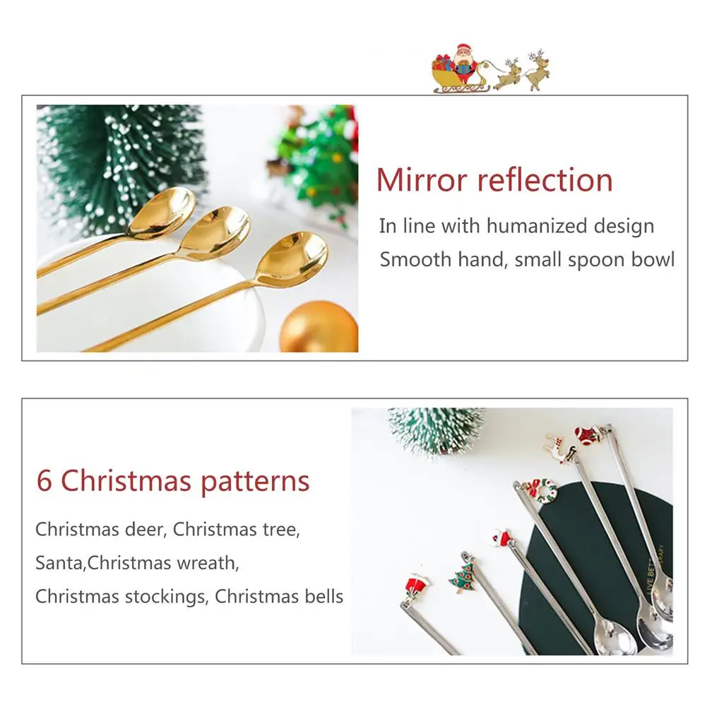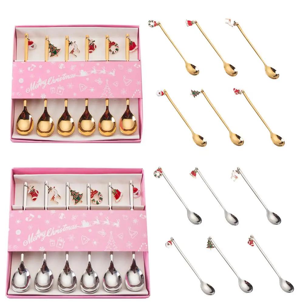 6 шт. Рождественская ложка Набор Мини Золотая чайная ложка инновационная кофейная ложка перемешивающая ложка сахарная ложка чайная ложка для рождественских подарков