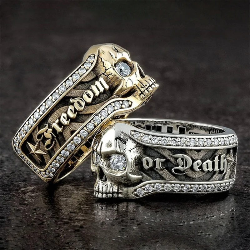 Мужское кольцо с черепом в готическом стиле, серебро 14 к