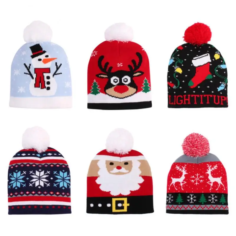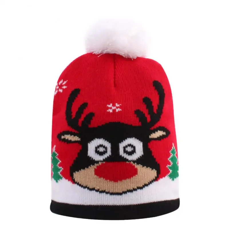 Рождественская шапка из шерстяной пряжи, теплая вязаная детская шапка на осень и зиму для детей и взрослых на рождественскую вечеринку