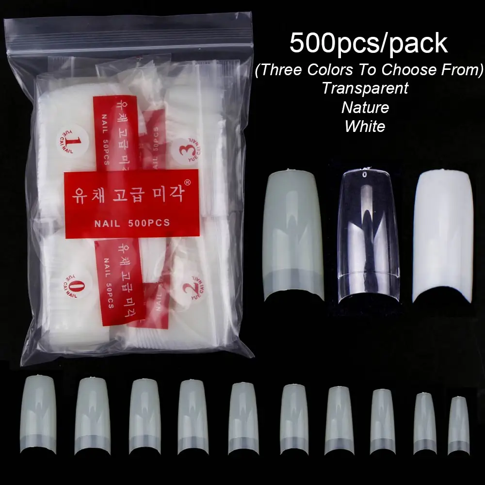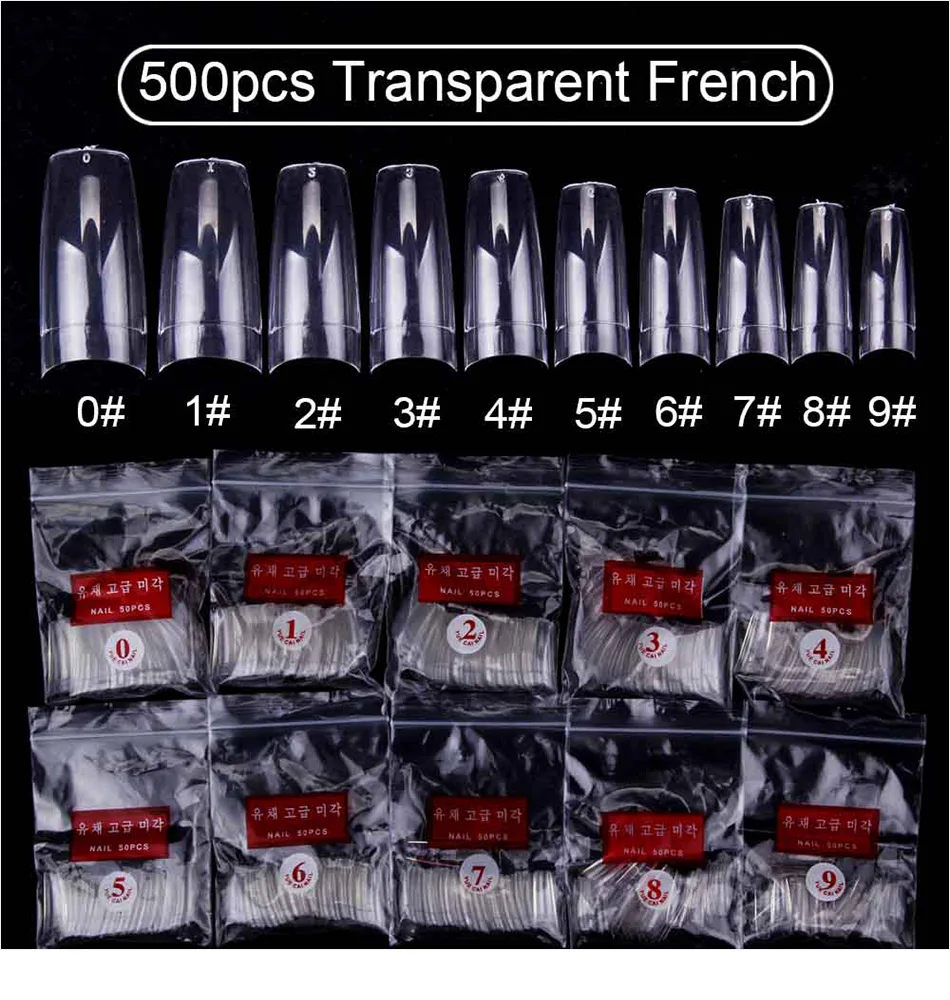 500 шт.пакет гроб накладные ногти натуральныйбелыйсветлый гвозь капсулы поддельные ногти мягкий гелеобразный чехол с полным покрытием Типсы для маникюра DIY Инструменты