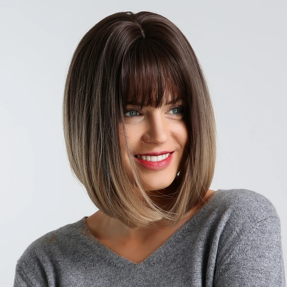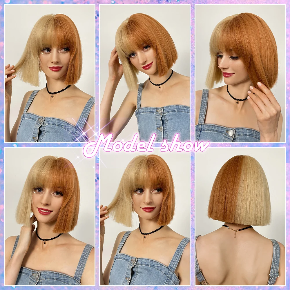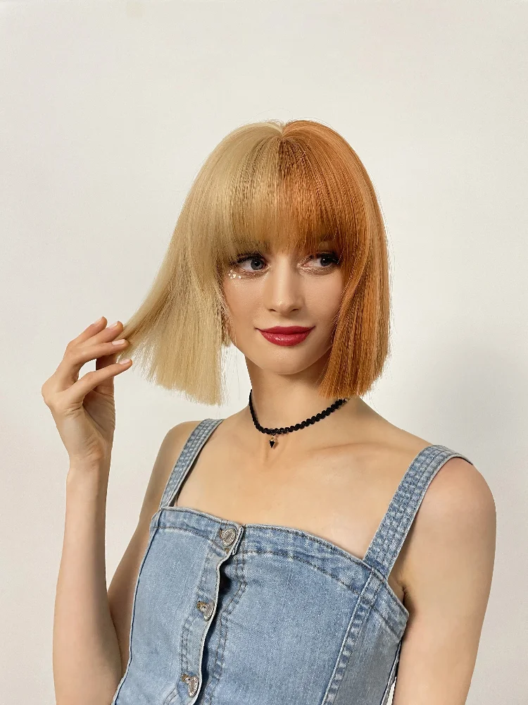 Светлый Единорог прямой синтетический короткий боб парик смешанный светлый фотоцвет с челкой женский косплей вечеринка ежедневно