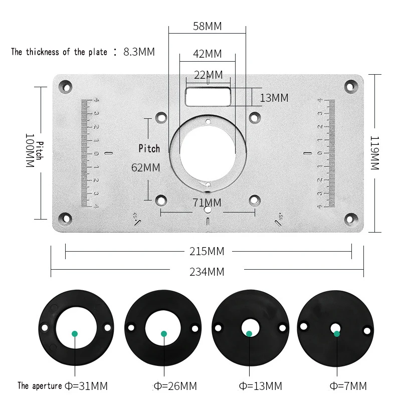 Алюминиевая вставная пластина для фрезерного стола с 4 кольцами, ви...