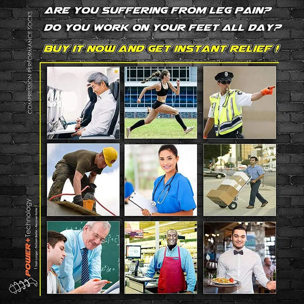 Снижает риск травмОбеспечивает дополнительную компрессионную поддержку для стабилизации свода, лодыжки и мышц. Минимизирует колебания мышц и micro-tearing.Prevents спазмов и травм. Усиленная поддержка может предотвратить травмы из-за плохой силы мышц, особенно во второй половине марафона. Улучшает вашу производительностьДля спортсменов на выносливость ключевым механизмом является «икроночный мышечный насос»-с каждым шагом или педальным ударом, сжимающий и разжимающий телячьи мышцы сдавливает кровь обратно к сердцу. Наши компрессионные носки обеспечивают дополнительное сжатие, которое усиливает это действие накачки, ускоряя поток очень необходимого кислорода для работы мышц. Ускоряет кровообращение к сердцу и избавляет от метаболических отходов от мышц. Помогает быстрее восстановитьсяСтимулирует кровоток и улучшает доставку кислорода в ваши мышцы. Уменьшает выработку молочной кислоты, мышечную болезненность и чувство тяжеловесности в ногах и ногах. Более быстрое восстановление от «задержки начала мышечной болезненности». Помогает предотвратить или снять отекиПомогает контролировать отек через улучшенную циркуляцию и ускоряет удаление клеточных отходов. Уменьшает отеки и усталость от длительного сидения или стоя. Идеально подходит для беременных женщин и тех, кто сидит или стоит в течение длительного периода во время путешествий или на работе. Помогает облегчить боль в подошвенном фасциитеРазработан с компрессией, чтобы помочь в управлении болью и облегчении от подошвенного фасцита, пятки шпоры и боли в суставах. Помогает при стоянии и ходьбе. Сжатие связок уменьшит воспаление, ускоряя процесс заживления. Которые могут извлечь выгоду из компрессионных носков:1. Беременная женщина2. Спортсмены и активные люди занимаются спортом, бегом, пешим туризмом, велоспортом, футболом и т. д.3. Частые путешественников или тех, кто летает на длинном самолете4, рабочие места, которые требуют от вас быть на ногах много: медсестры, учителя, строительные работники, повара, линейные рабочие, ресторанный обслуживающий персонал и т. Д.5. Рабочие места, которые требуют длительного сидения: офисные работники, водители и т. Д.6. Любой, кто болеет варикозным расширением вен, отеком, подошвенным фасциитом и т. Д.