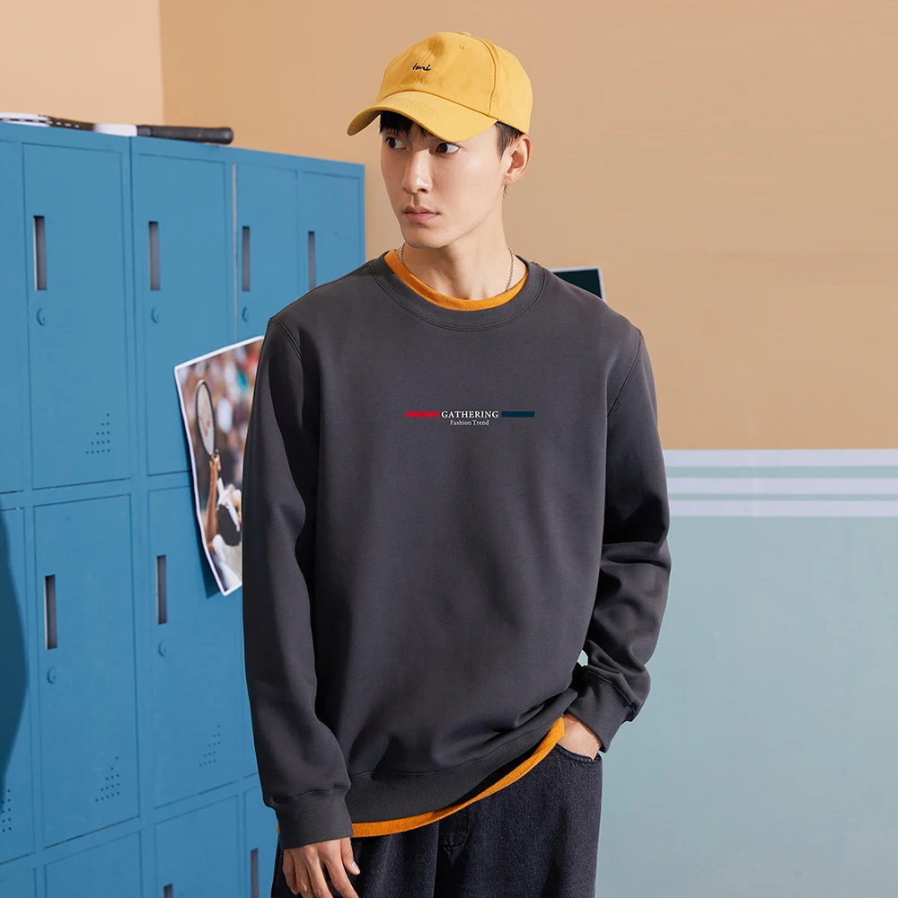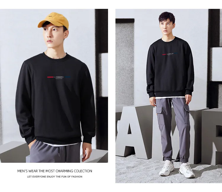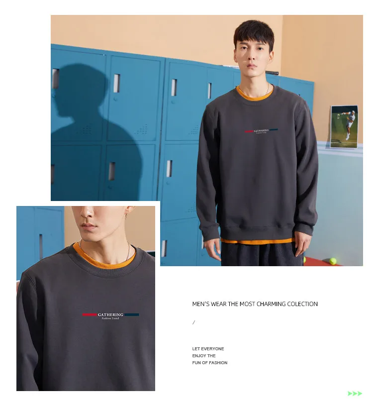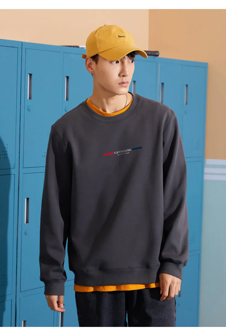 Пионерский лагерь уличная одежда мужская толстовка теплая флисовая черная серая с круглым вырезом зимняя мужская одежда AYK04006100