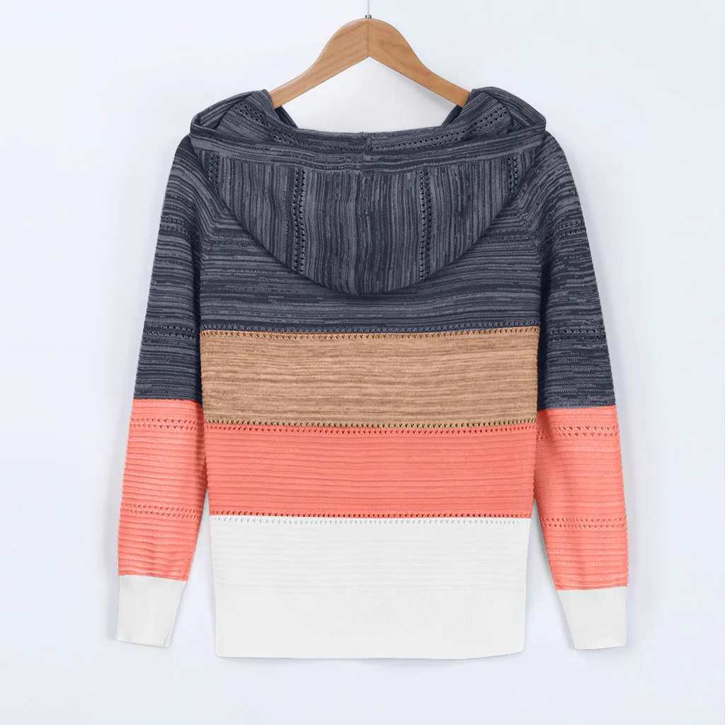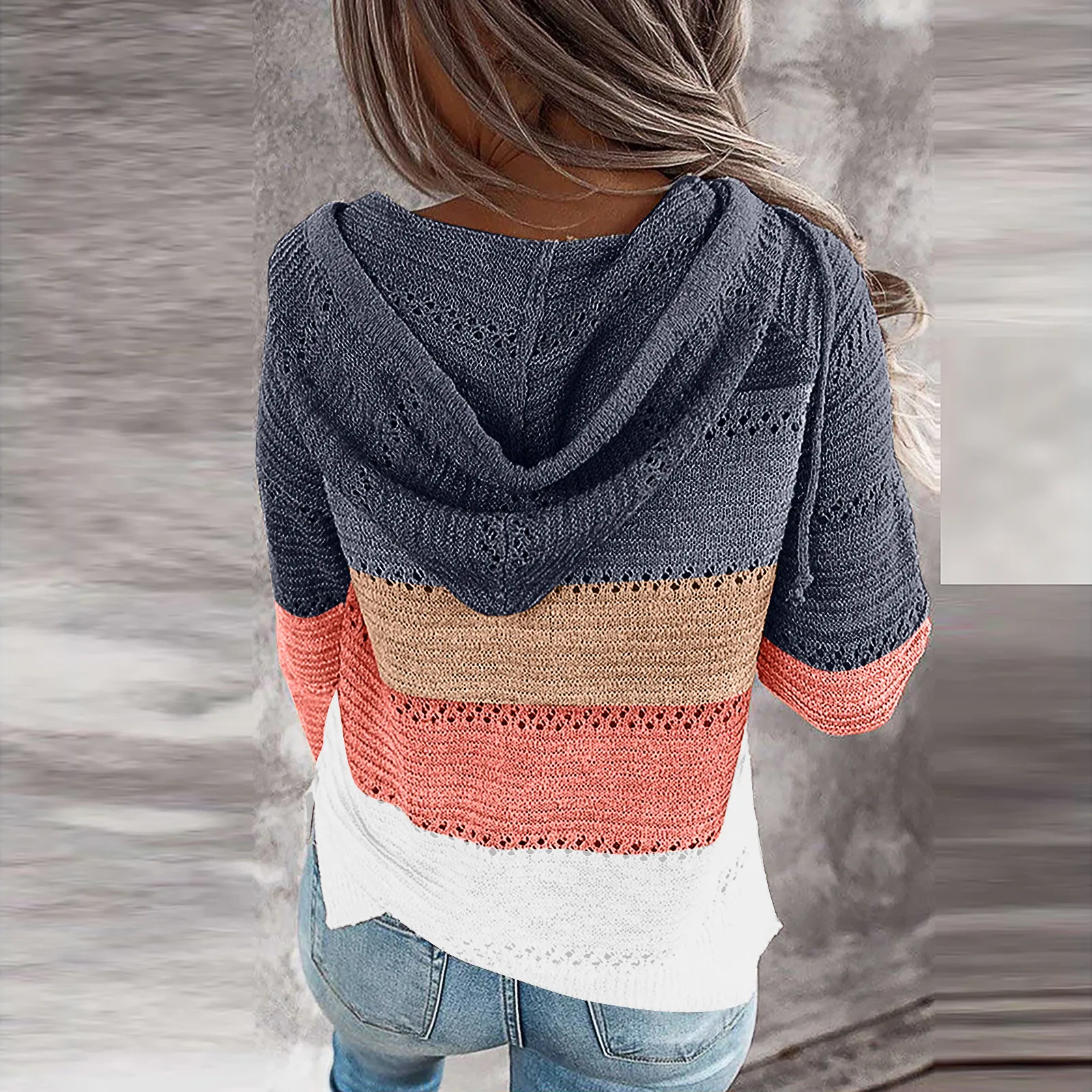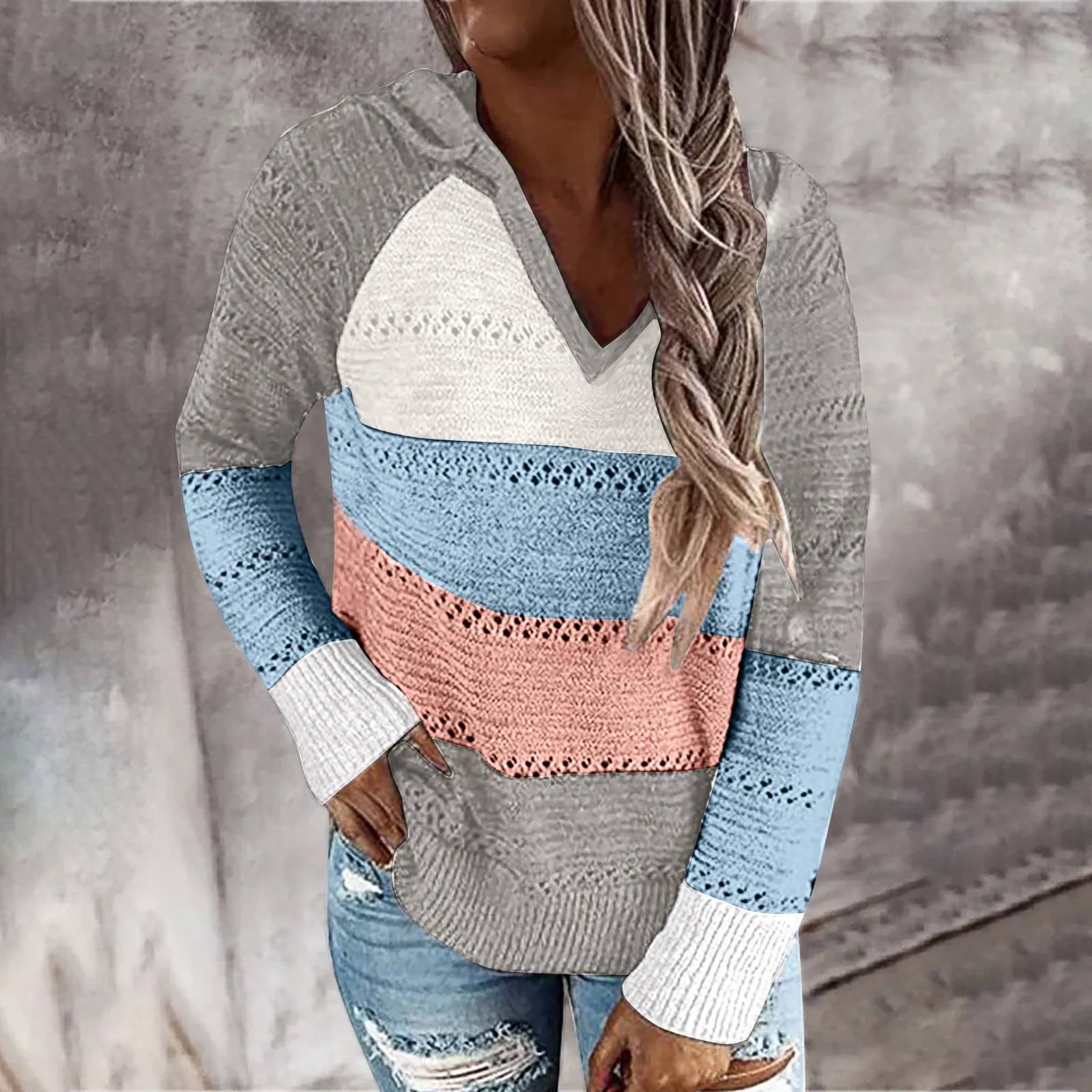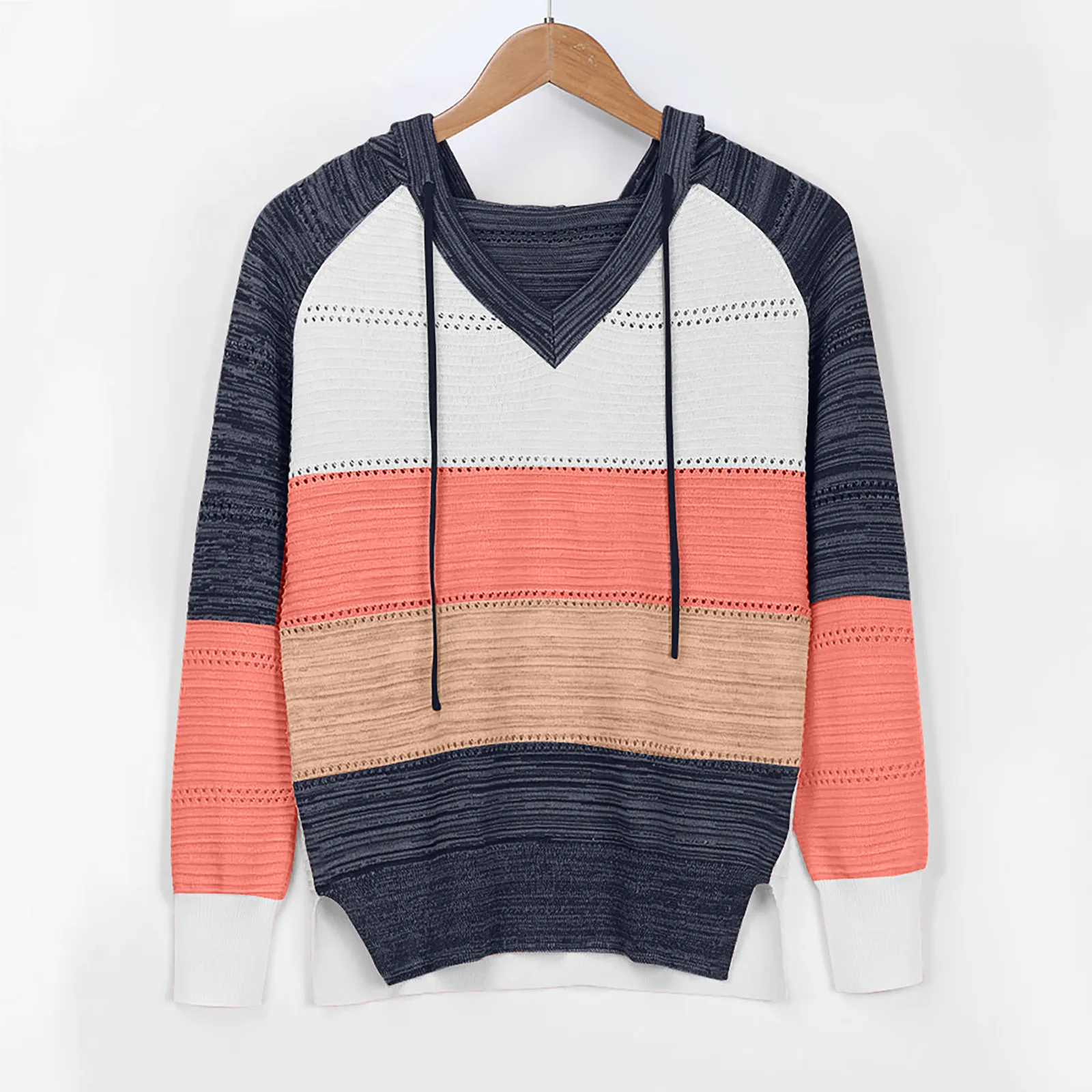 Свитер с капюшоном, составного кроя, с V-образным вырезом и длинным рукавом