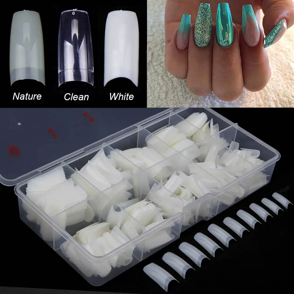 500 шт.кор. акриловые Типсы прозрачные капсулы для ногтей искусственные ногти Мягкий гель полное покрытие гроб Типсы для маникюра Инструменты