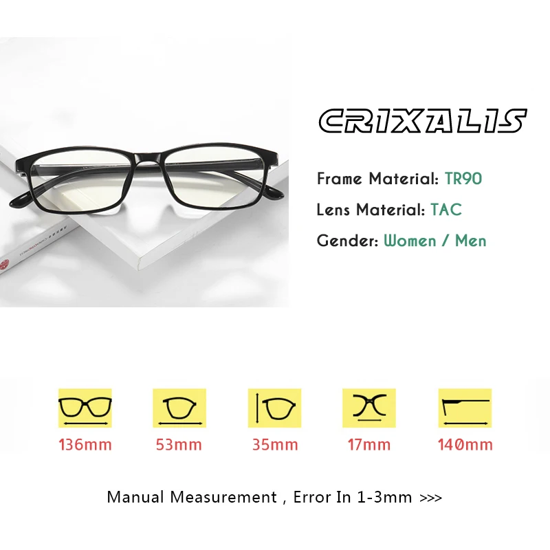 Очки для чтения CRIXALIS мужскиеженские, прямоугольная форма, защит...