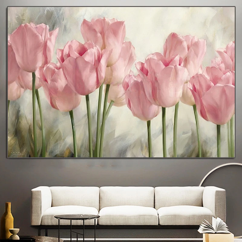 Художественная Классическая картина с изображением розовых тюльпанов, плакаты и принты на холсте, домашняя спальня, столовая, настенное украшение