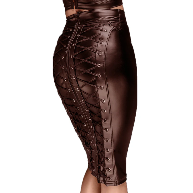 Юбка-карандаш женская из искусственной кожи, с высокой талией и молнией сзади