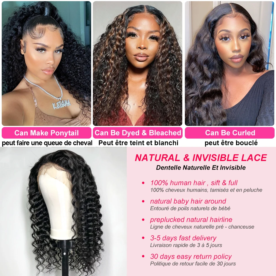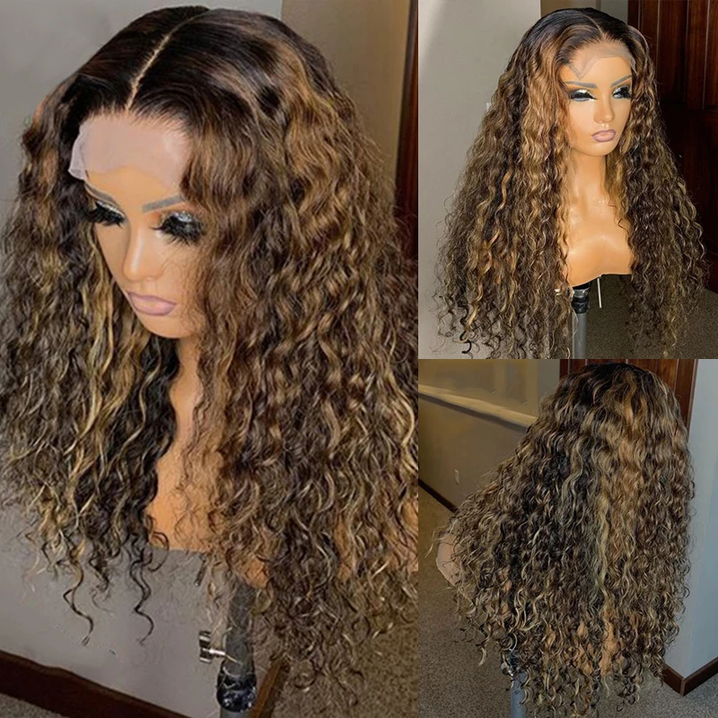 Парики из человеческих волос с глубокими вьющимися волосами, коричневый, 13x4, кружевной фронтальный парик, волосы Реми, блондинка, волна воды, парики с закрытием шнурка для женщин