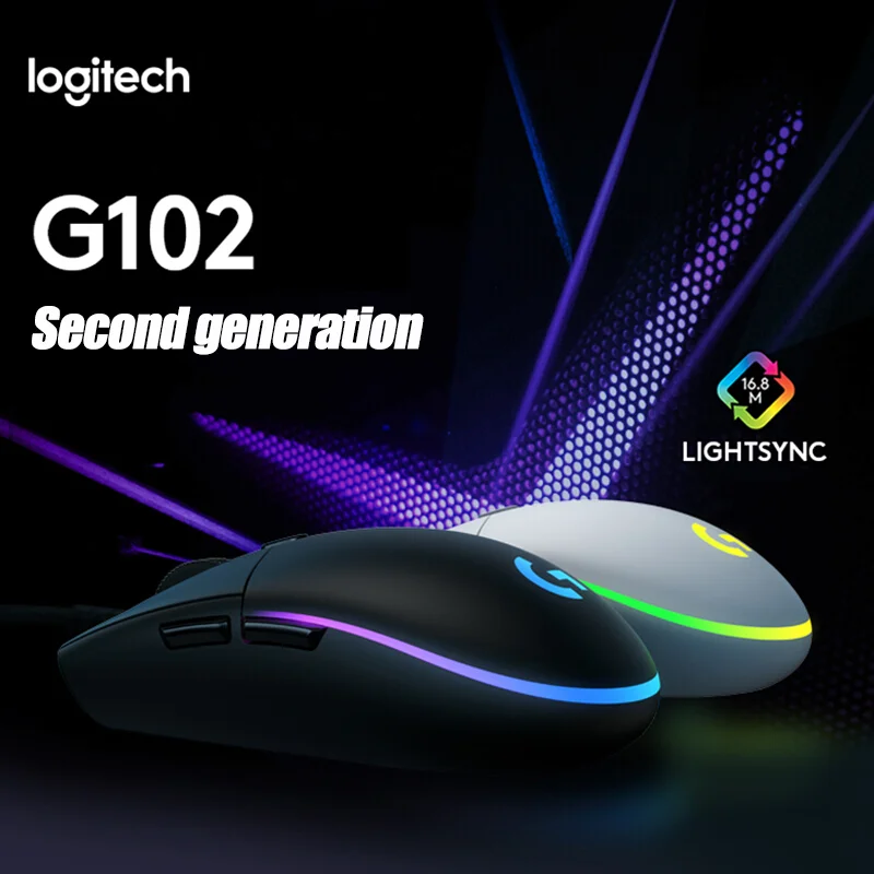 Игровая мышь Logitech G102, проводная мышь 2-го поколения, игровая механическая, с RGB-подсветкой, обновление