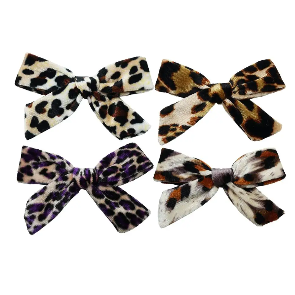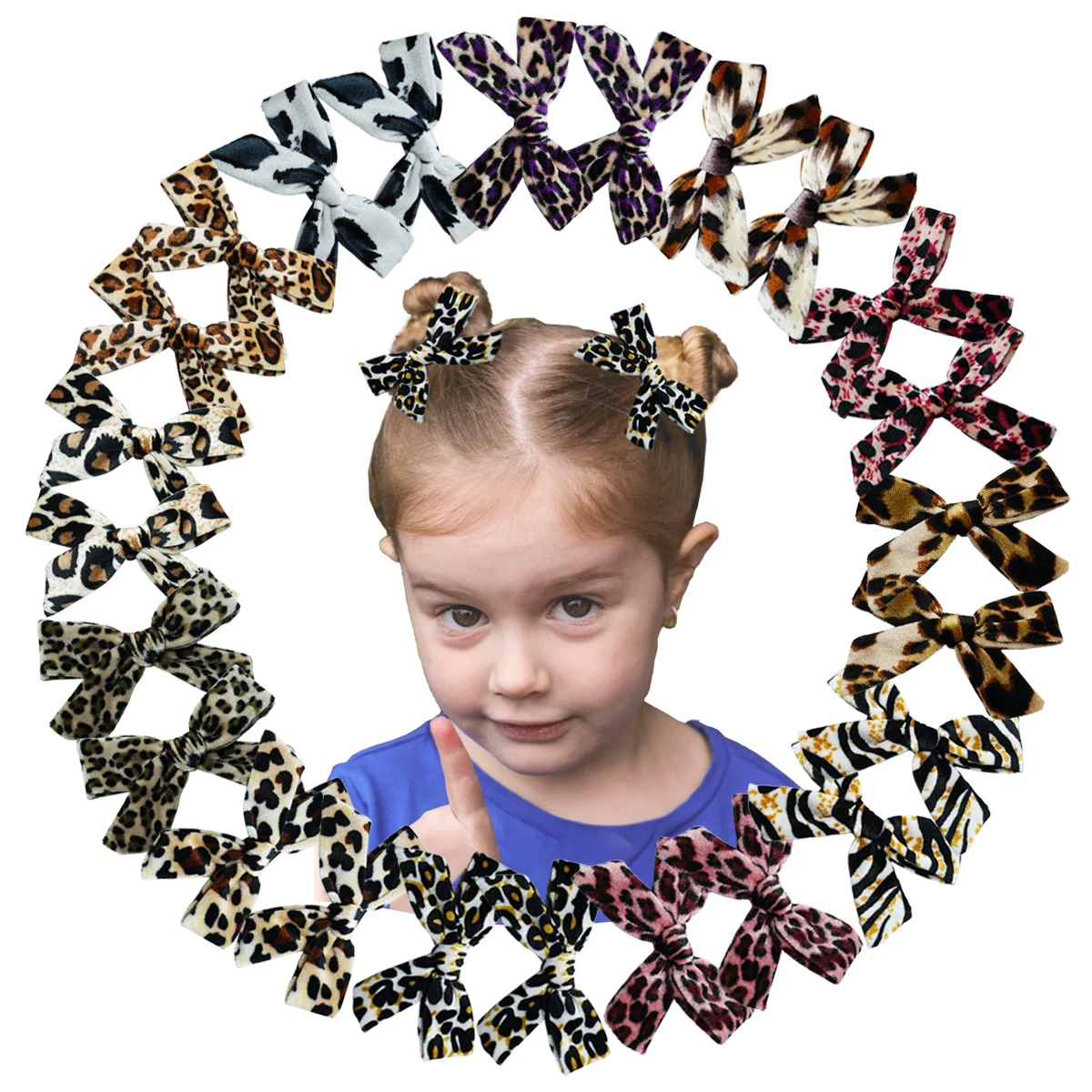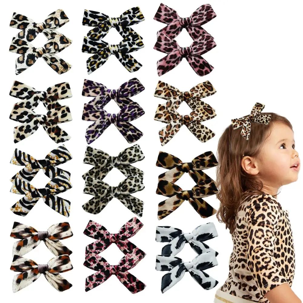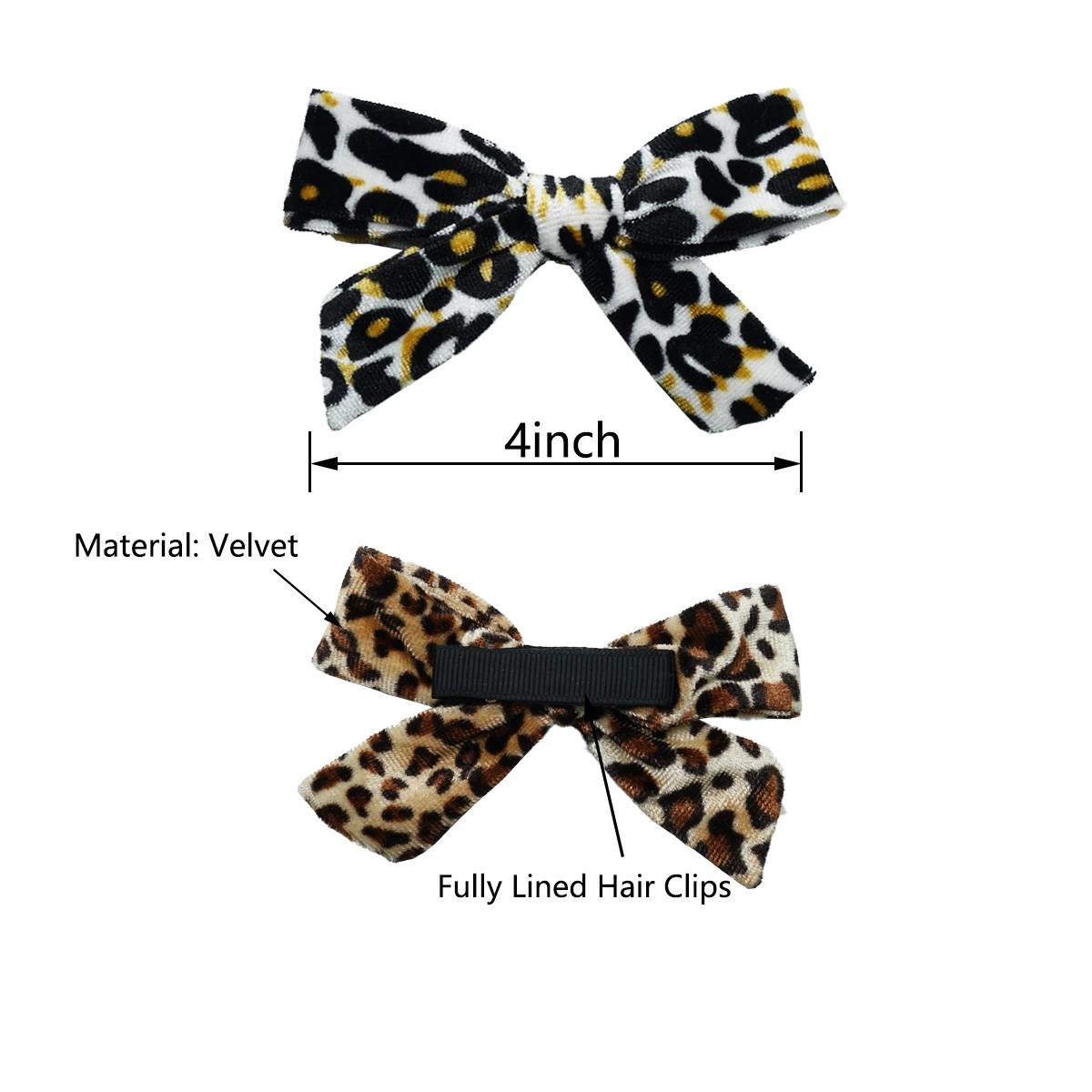 24 шт./12 пар, бархатные заколки для волос с леопардовым принтом для маленьких девочек, 4 дюйма, полностью на подкладке, аксессуары для волос для маленьких девочек, школьниц и подростков, заколки с бантами для волос