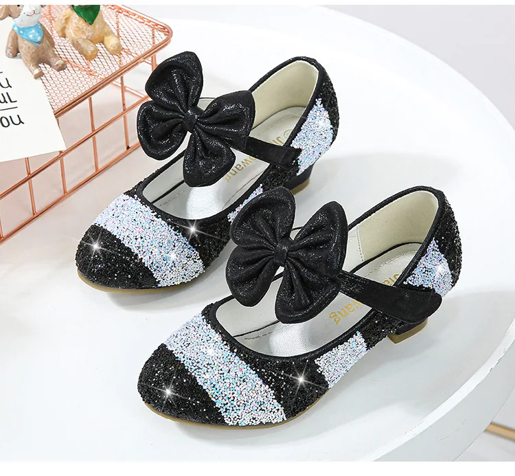 Туфли принцессы для девочек с бантом-бабочкой, блестящие туфли на в...