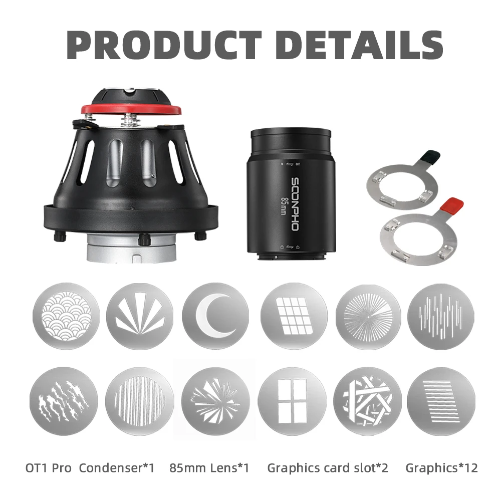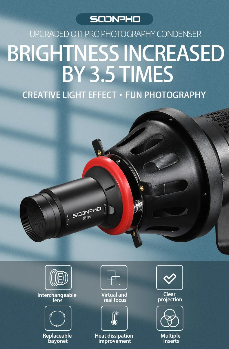 Фотооптический конденсатор OT1 PRO II Bowens, фокусирующий конический луч, цилиндрическая линза для спецэффектов