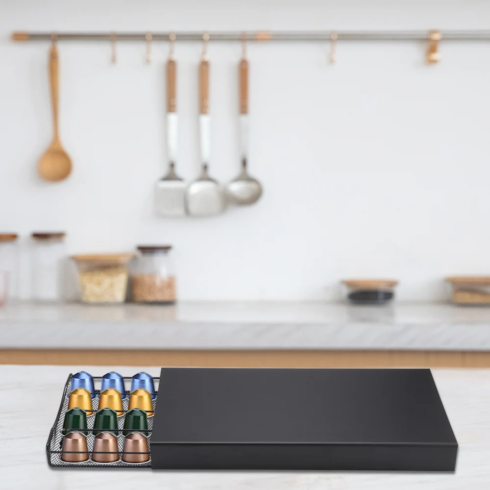 Особенности: Большая емкость В ящике кофейных капсул с четырьмя отсеками в форме бара могут поместиться кофейные капсулы 40/42. Большой емкости может хватить больше людей или долгое время на кофе, что делает его легким для доступа к вашей кофейной капсуле. Прочная структура и экономия пространства Ящик для кофейных капсул изготовлен из высококачественного железного материала, который является жестким, твердым и износостойким. Ящик для кофейных капсул с прочной структурой может отверстие кофемашины в верхней части и хранить кофейную капсулу в ящике одновременно, что может эффективно помочь вам сэкономить место. Стабильная и противоскользящая Ящик для кофейных капсул разработан с четырьмя противоскользящими резиновыми ножками на дне, чтобы обеспечить стабильность ящика кофейных капсул и предотвратить скольжение. Простота в эксплуатации В ящике кофейного стручка есть гуманная паза ящика и гладкая направляющая для ящика, простая в эксплуатации, без каких-либо препятствий. Мощное покрытое железо с полированной поверхностью не легко повредить руки. Модный внешний вид Кофейный ящик с черной металлической рамкой ящика, которая является простой и минималистичной. Этот модный внешний вид украшает вашу кухню в хорошем вкусовом стиле. Область применения Ящик для кофейных капсул специально разработан для кофейных капсул nespresso, которые могут широко использоваться в домашних условиях, в офисе, на кухне, в кафе, в салонах и так далее. Спецификация: А-Тип: ящик для кофе Количество: 1 шт. Материал: железо Цвет: черный Размер: 37,5*17,7*5 см/14,74*6,96*1,97 дюймов (Д * Ш * В)