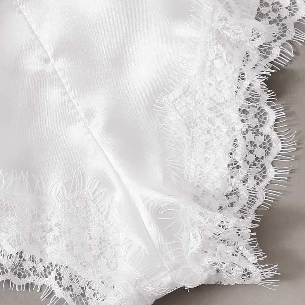 Женское кружевное боди с V-образным вырезом и бантом, пижама, Шелковый комбинезон