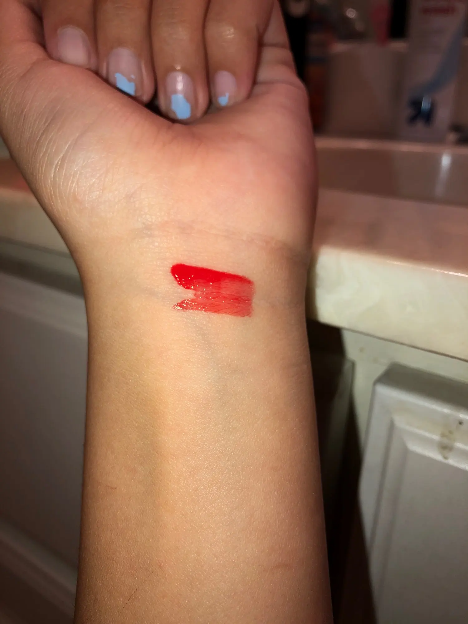 декіька разів нанесла(результат на фото); був код, але перейшовши по ньому я побачила якісь кросівки; орієнтовно місяць йшло до львівської області; продавець відповідав, що вже дуже прекрасно; гарно пахне, але швидко змивається; впринципі, як блиск - нормально, але ціна кусається .