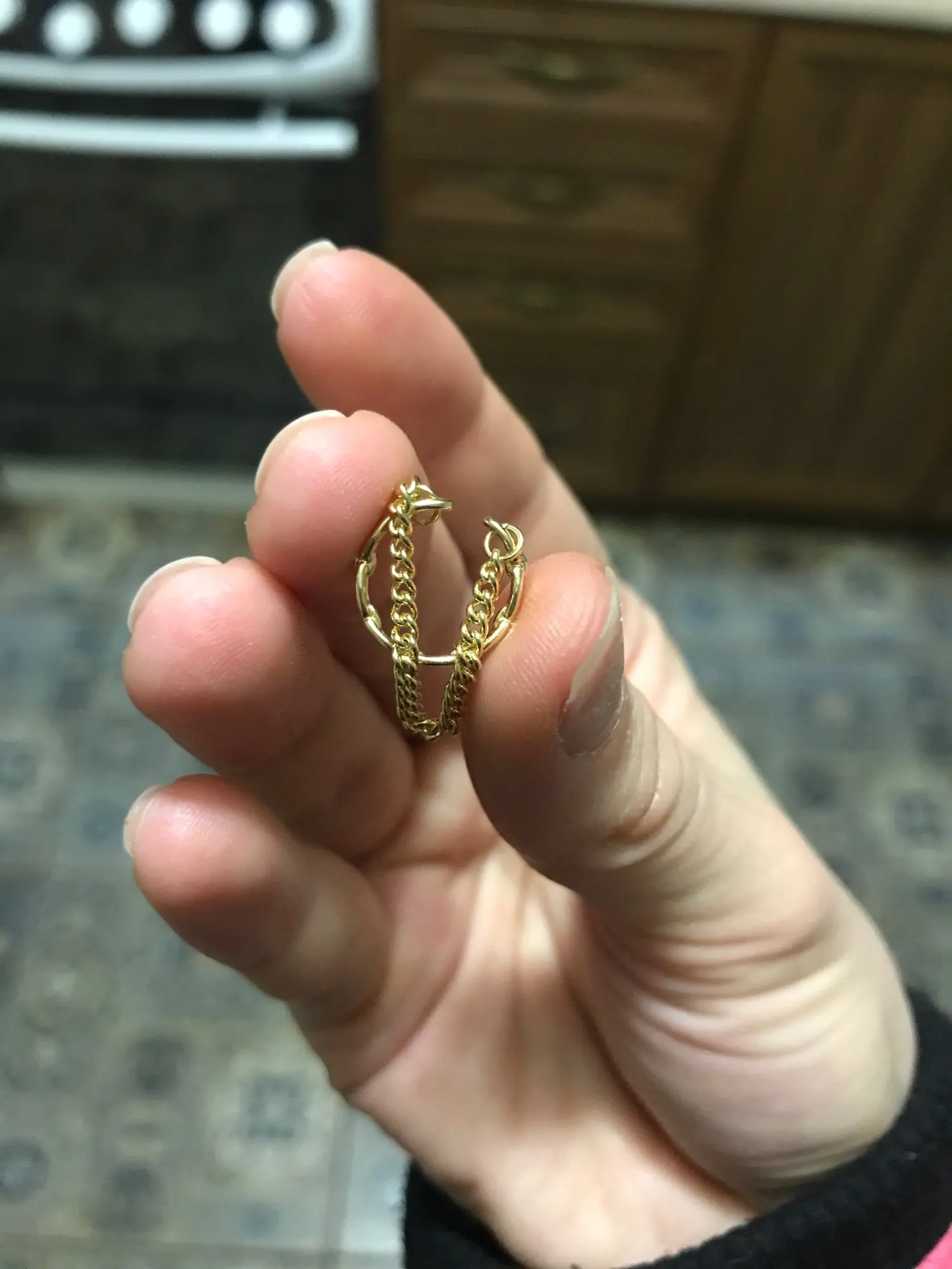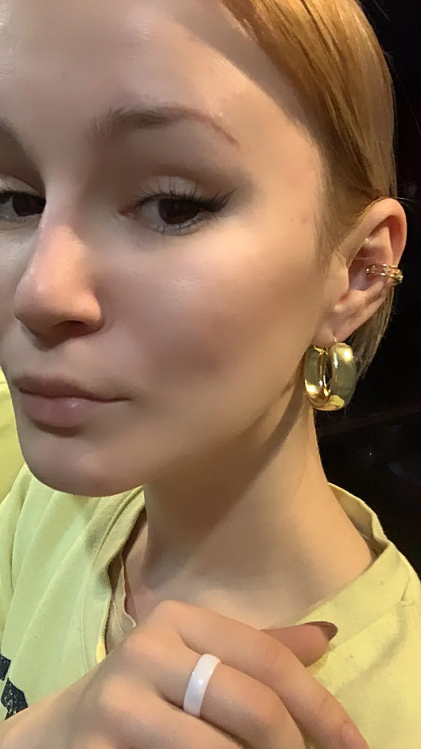 Очень долго шли. Качество хорошее. Не уверена, насколько крепко будут сидеть на ухе. Широкая серьга вообще не гнется и сидит в 1м положении. Это мои первые каффы, и я не знаю как они должны сидеть на ухе)