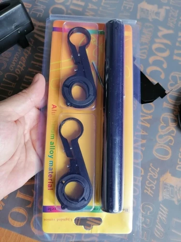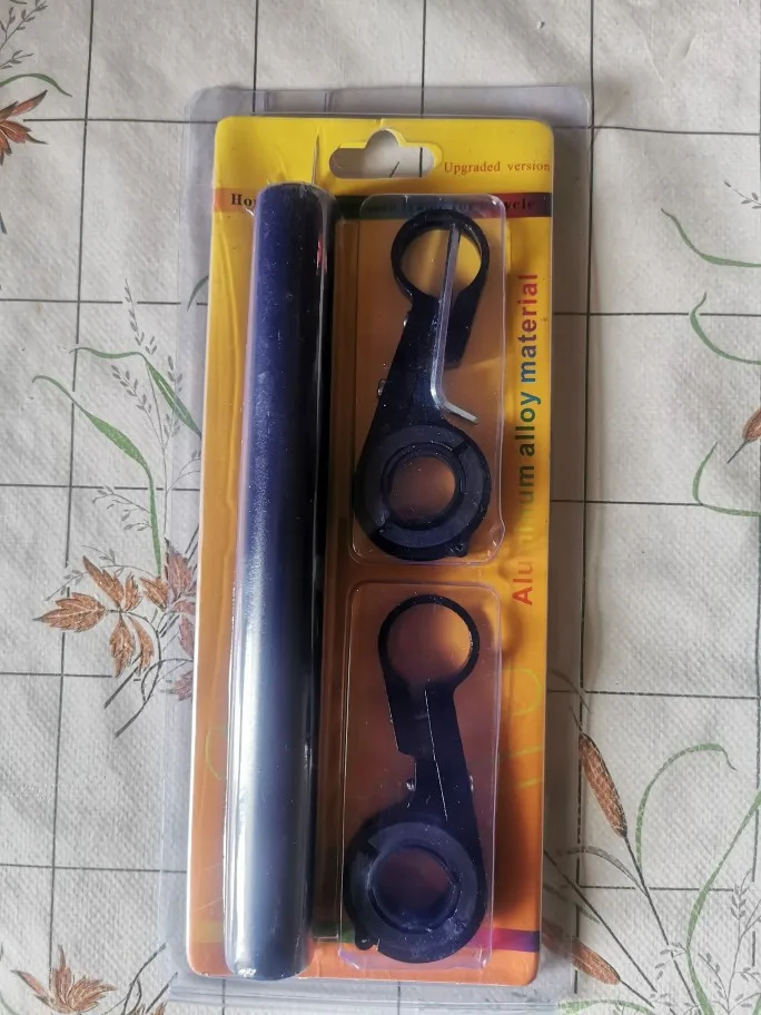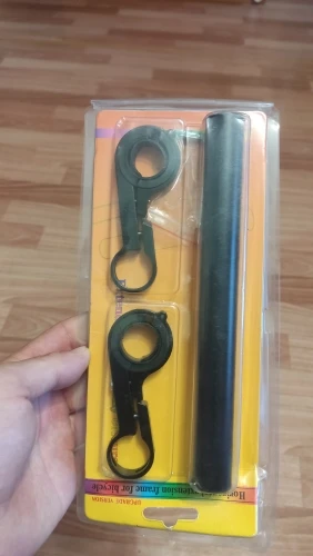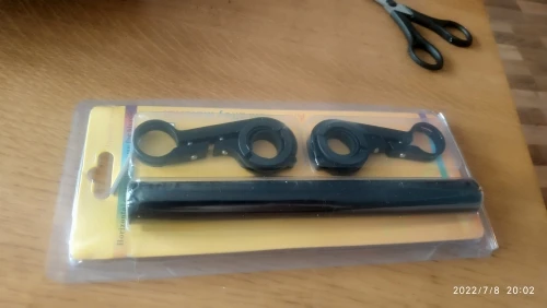 Заказ приехал быстро - до Московской области - 10 дней. Кронштейны расширителя для руля 22 мм немного великоваты, несмотря на наличие различных проставок. Пришлось дополнительно подмотать изоленту. В комплекте шестигранник для винтов.