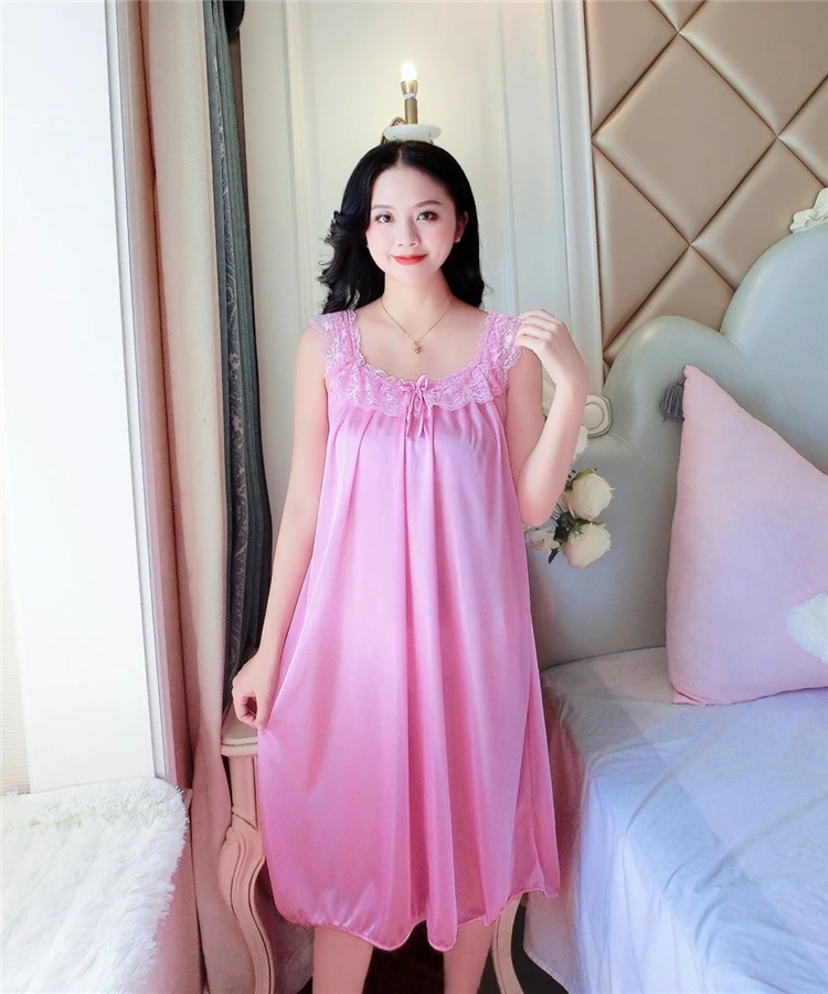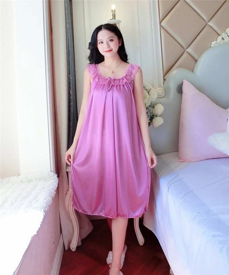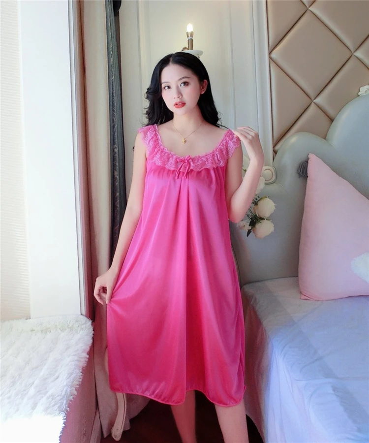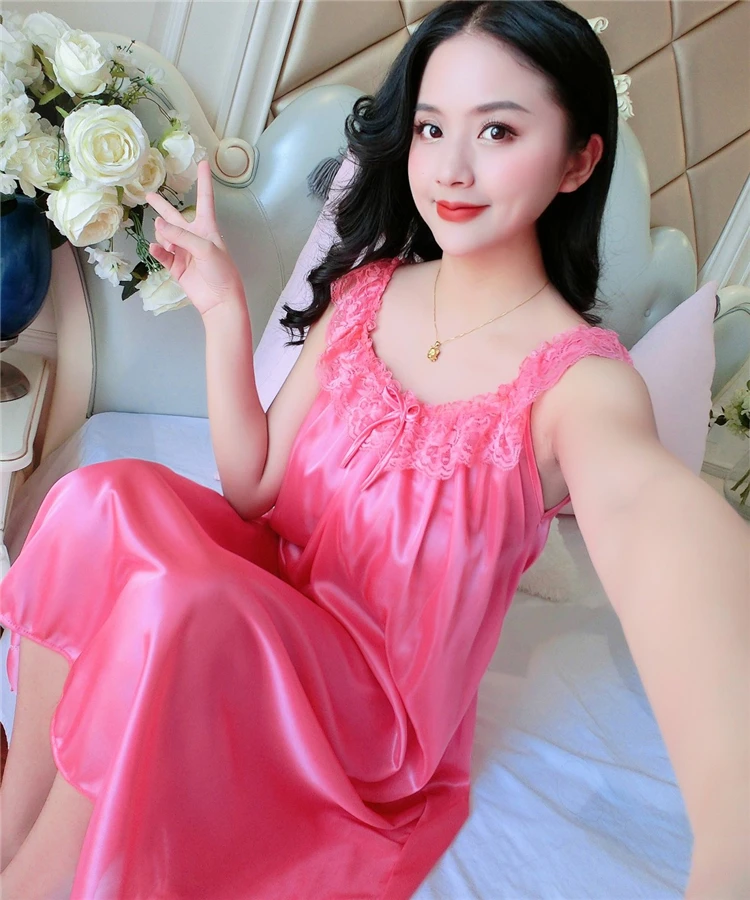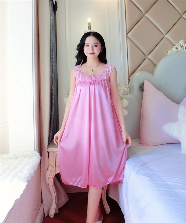 4XL Весенняя кружевная ночная рубашка из ледяного шелка, домашняя одежда, женские длинные платья, розовое платье для сна, женская пижама без рукавов, сексуальная пижама
