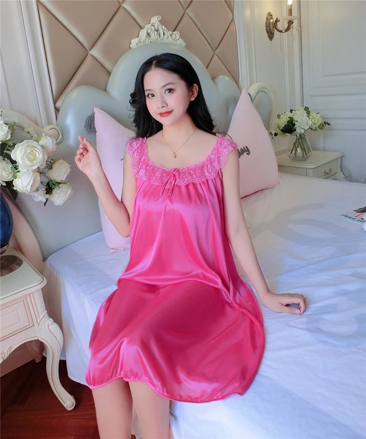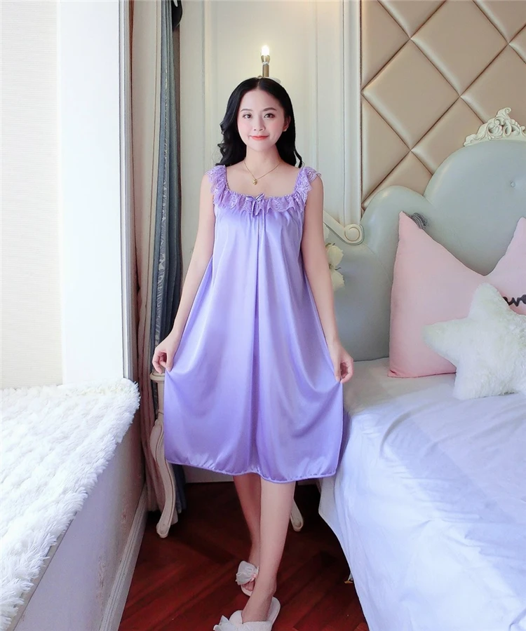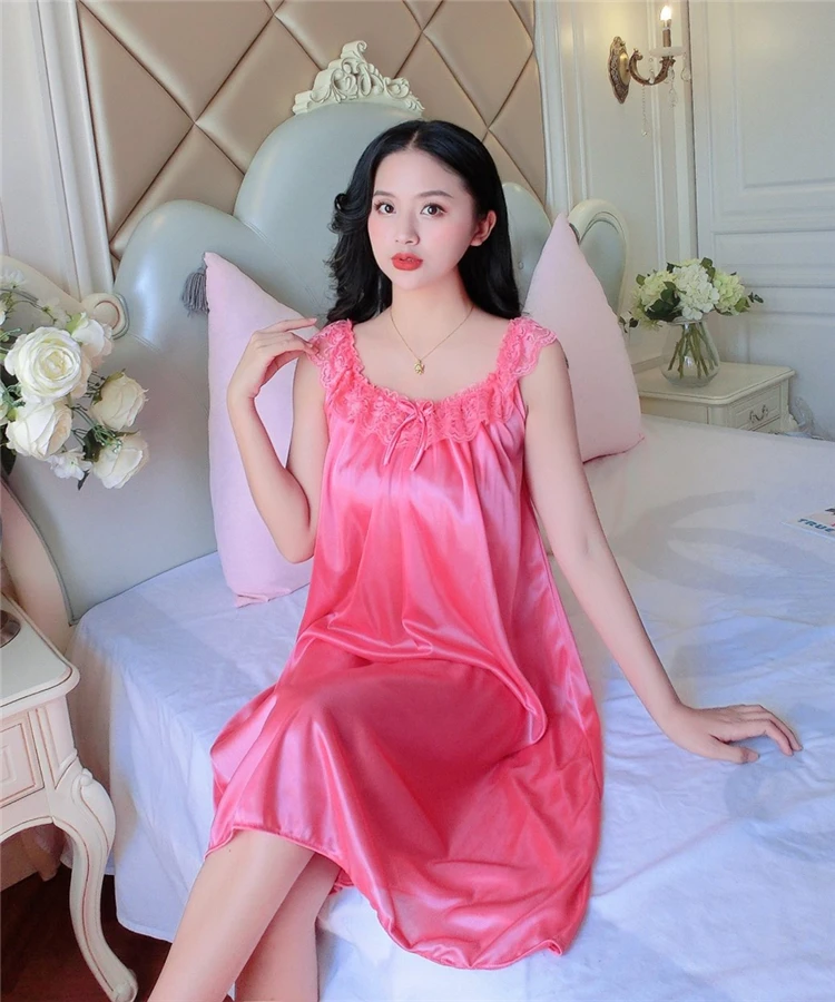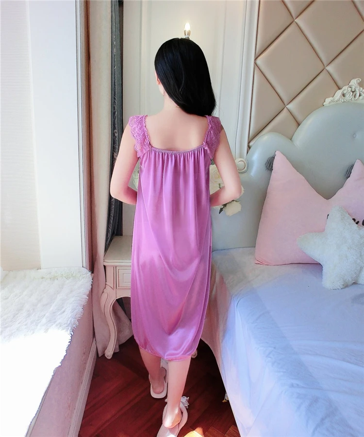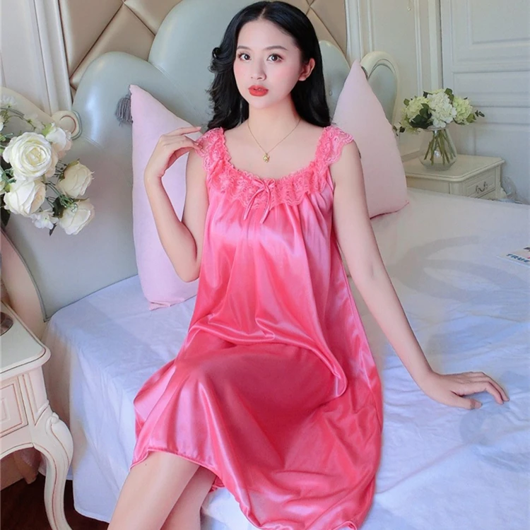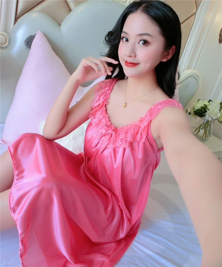 4XL Весенняя кружевная ночная рубашка из ледяного шелка, домашняя одежда, женские длинные платья, розовое платье для сна, женская пижама без рукавов, сексуальная пижама