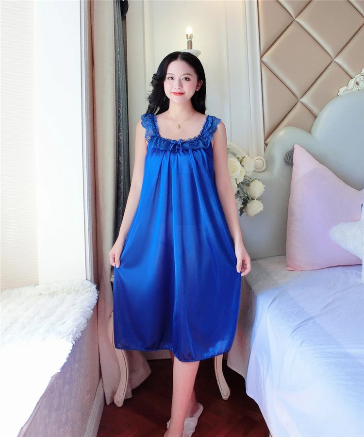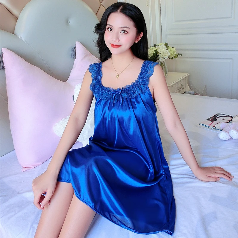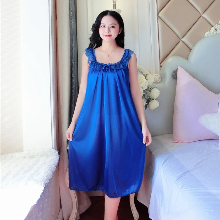 Ночная сорочка женская, шелковая, кружевная, без рукавов, 4XL