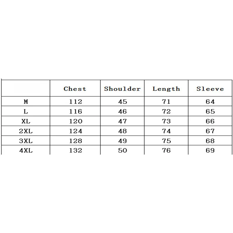 XXXXL Обхват груди: 51,97 Ширина плеч: 19,69 Длина: 29,92 Длина рукава: 27,17