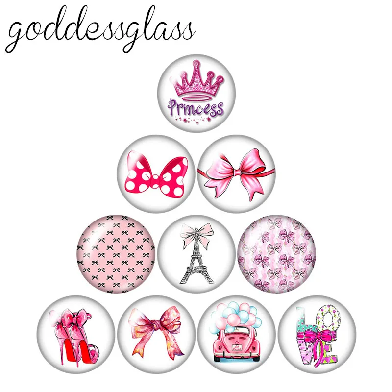 Новая красивая розовая лента, модная леди, принцесса, 10 шт., 12 мм18 мм20 мм25 мм, круглая фотостеклянная кабошон, демонстрационная фурнитура с плоским основанием