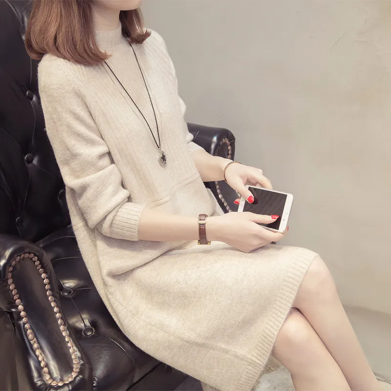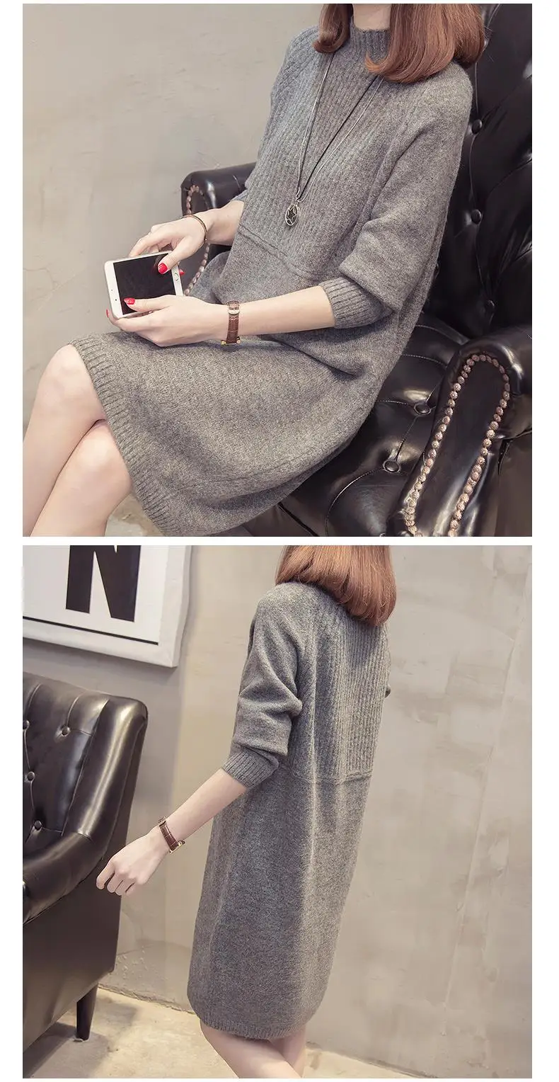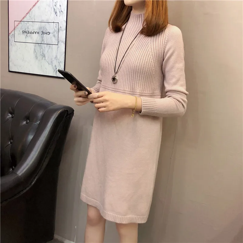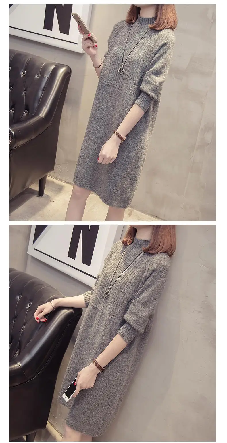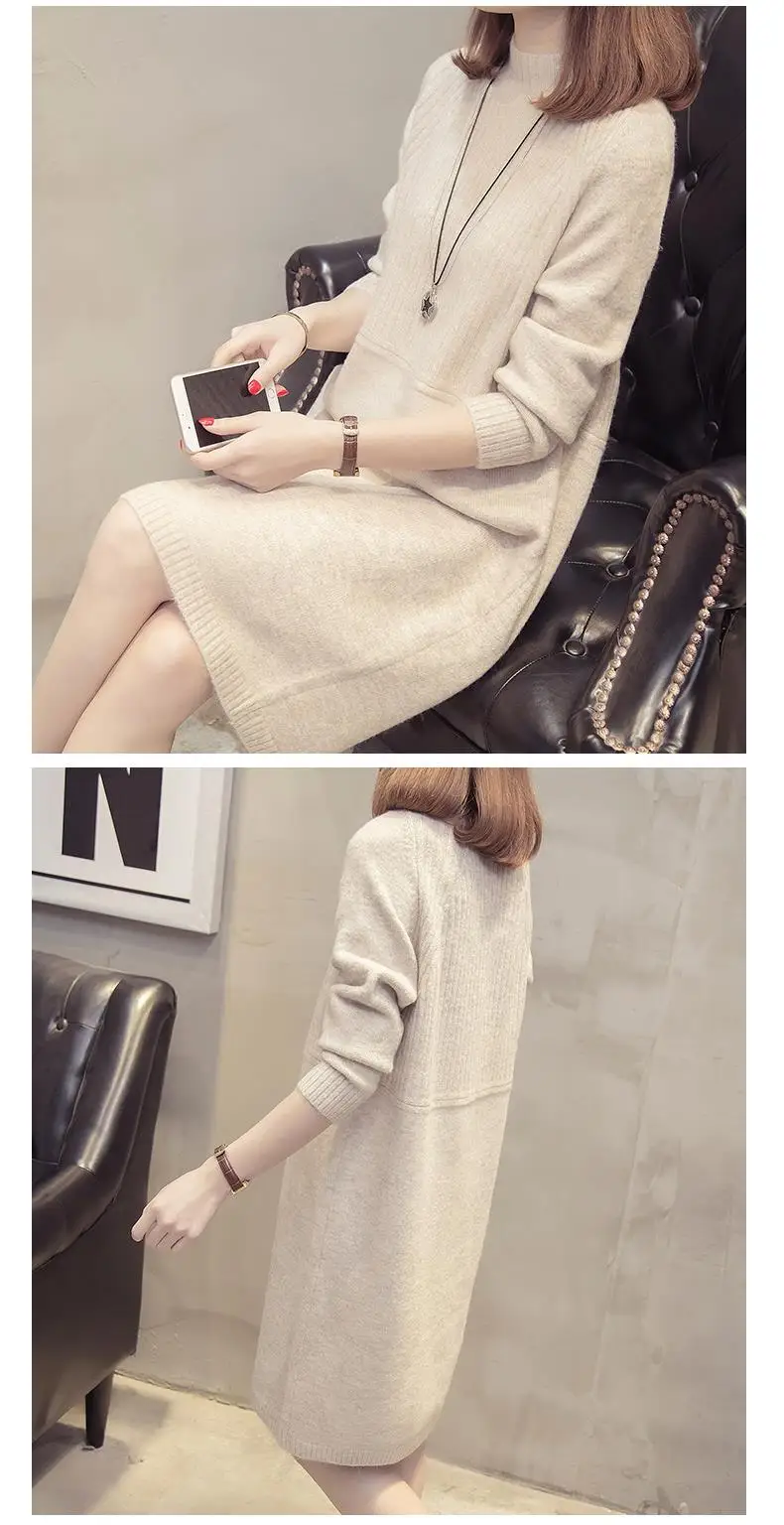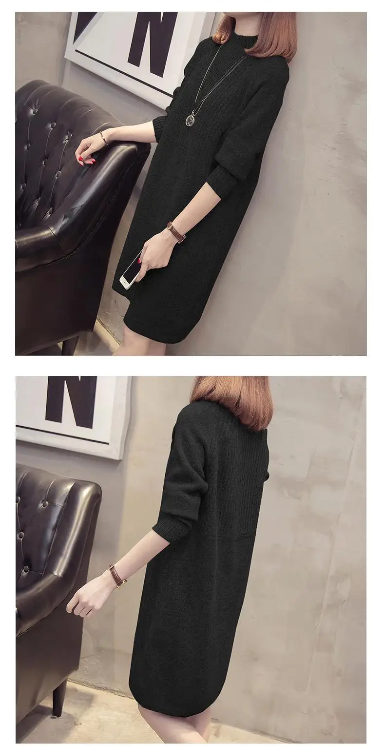 Осень-зима 2020, женский свитер с длинным рукавом, пуловеры, женское вязаное длинное платье, женская однотонная одежда, Женский NS4679