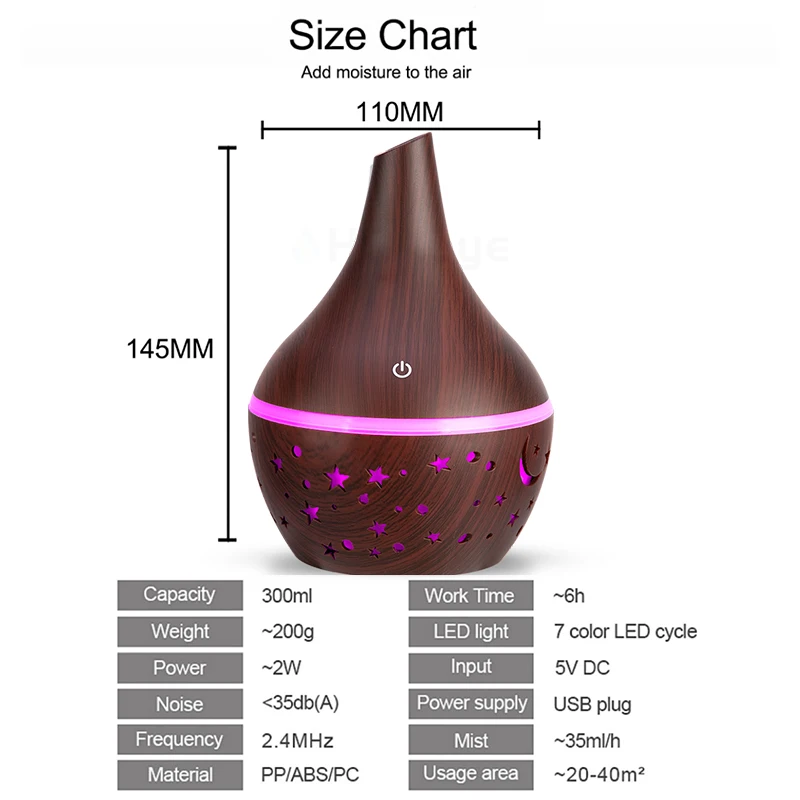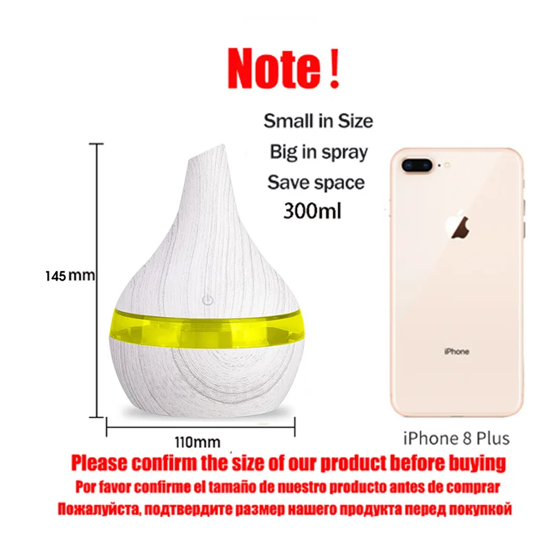 Ультразвуковой ароматический увлажнитель воздуха 300 мл с функциями диффузор, ароматерапия, генератор тумана, USB, для дома и автомобиля