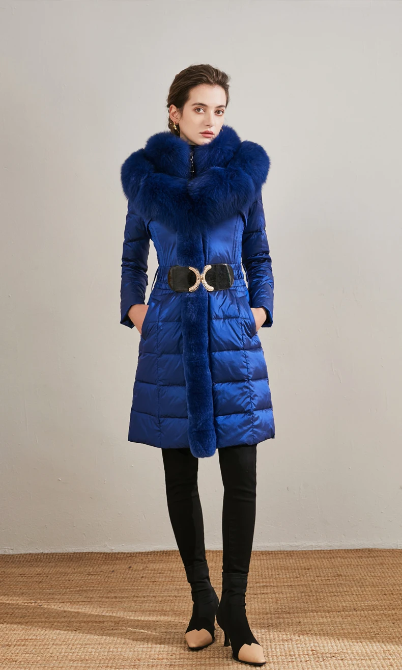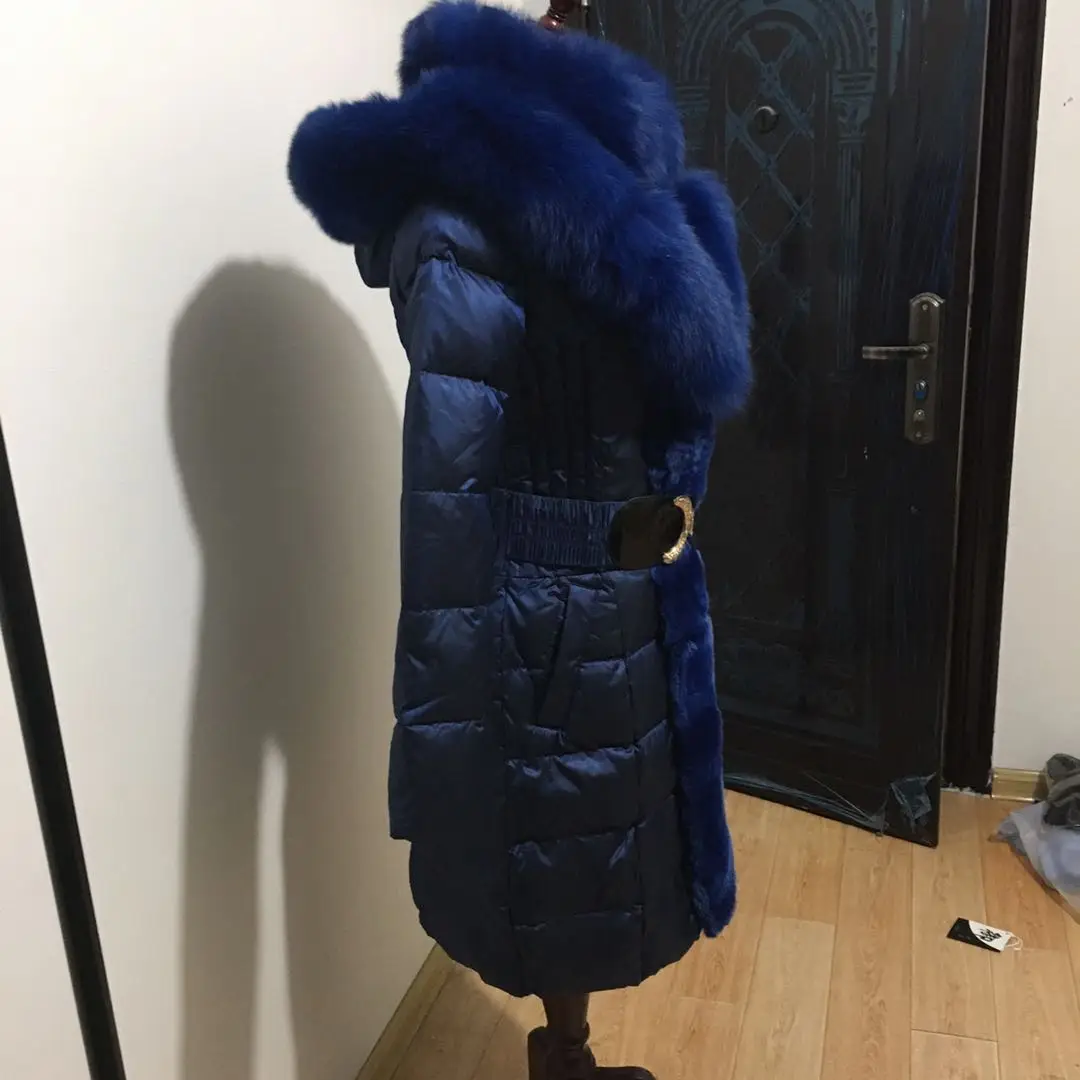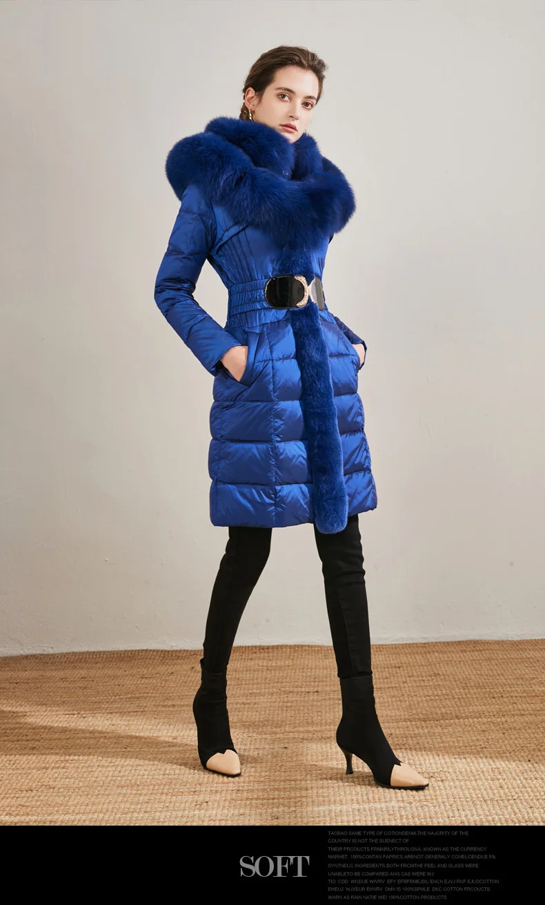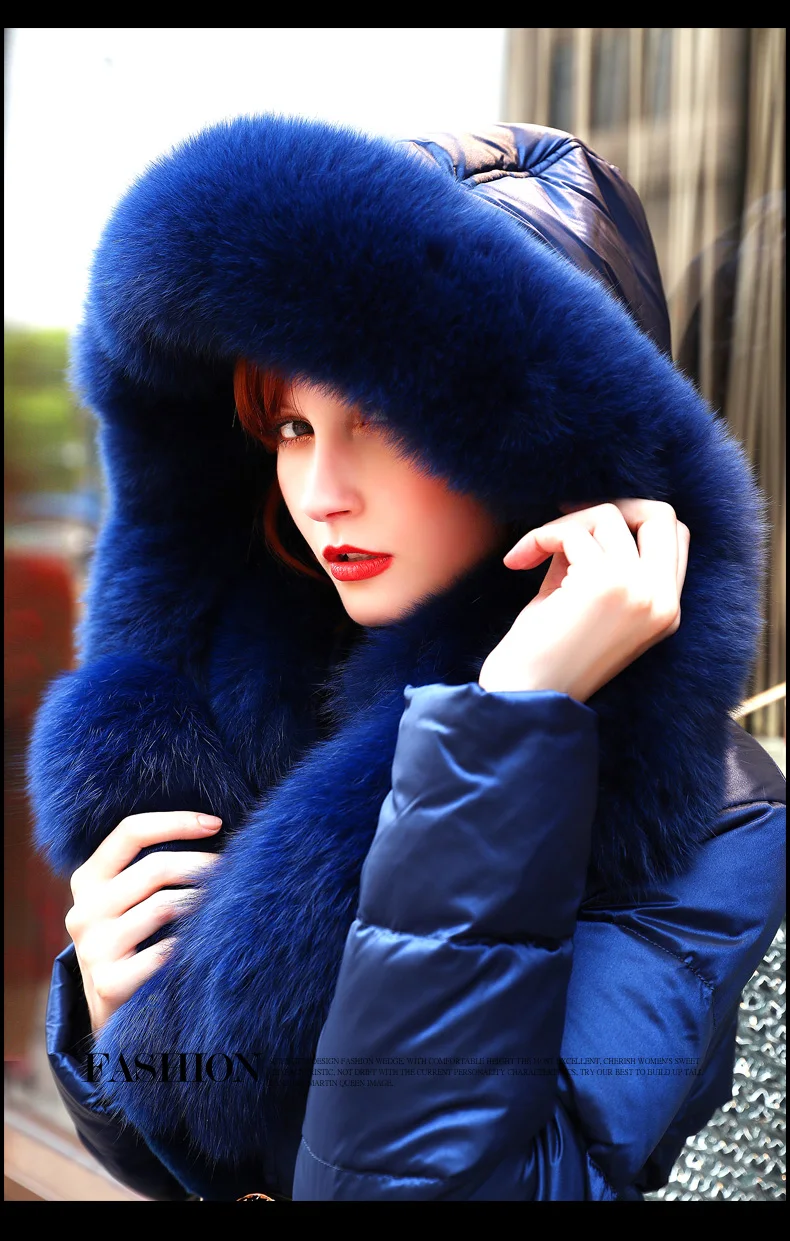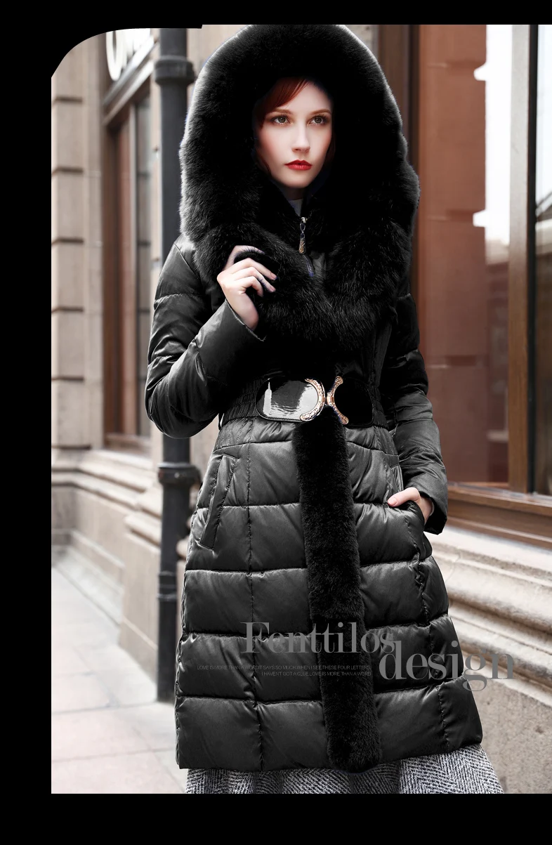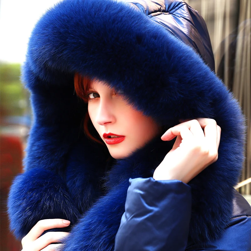 Пуховик женский зимний из натурального Лисьего меха, с капюшоном, F2299