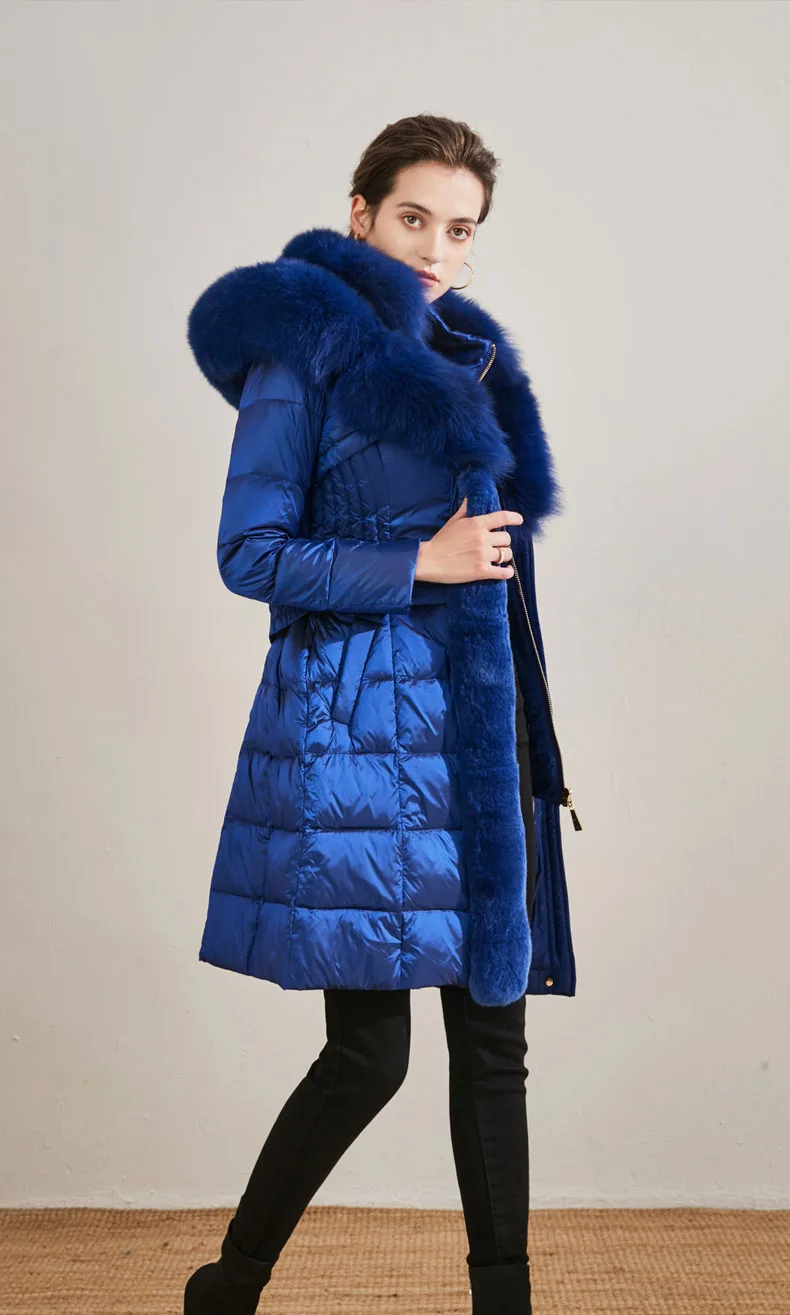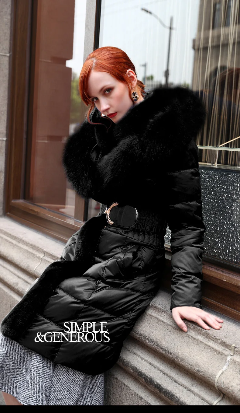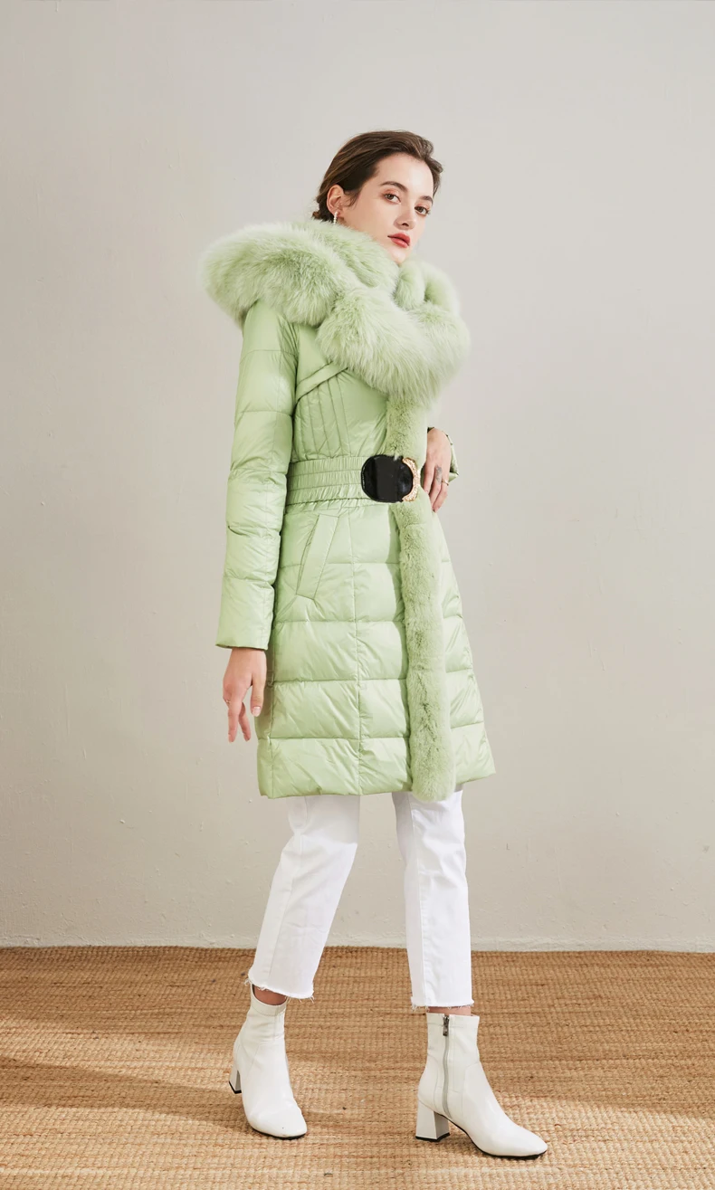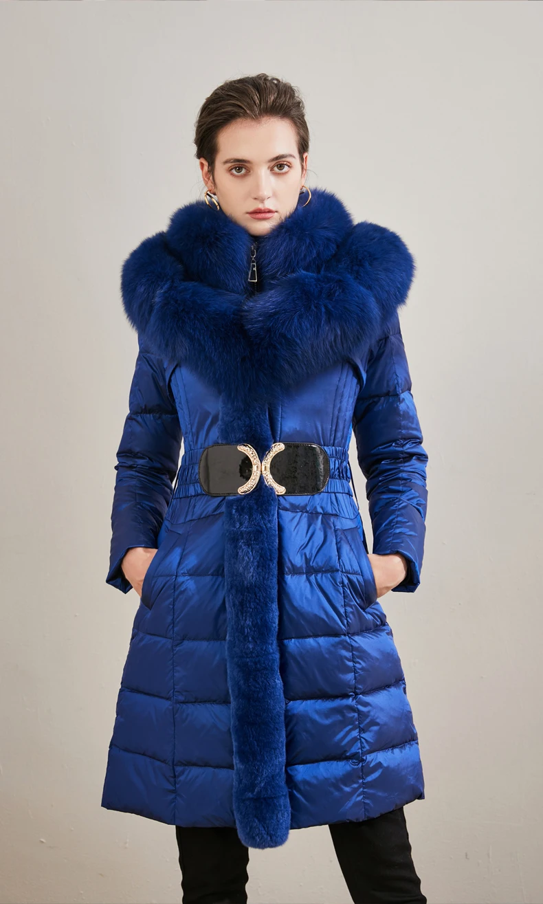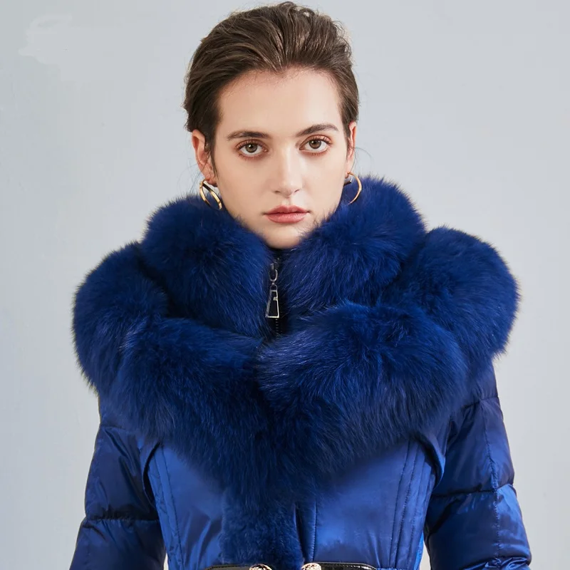 Пуховик женский зимний из натурального Лисьего меха, с капюшоном, F2299