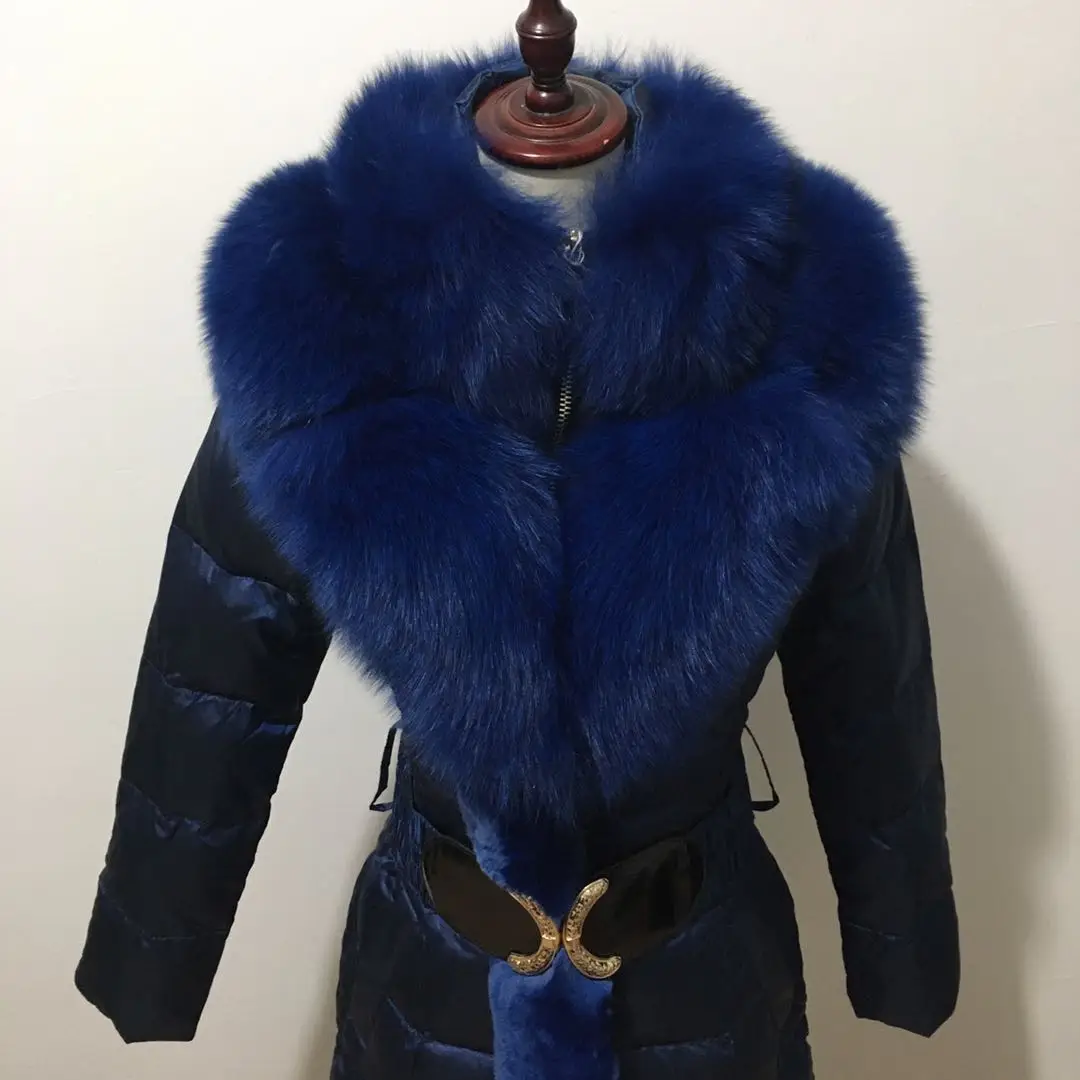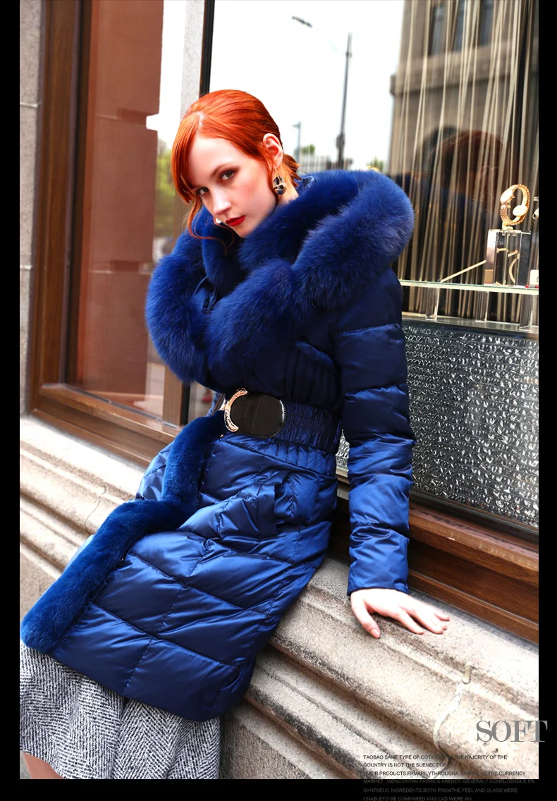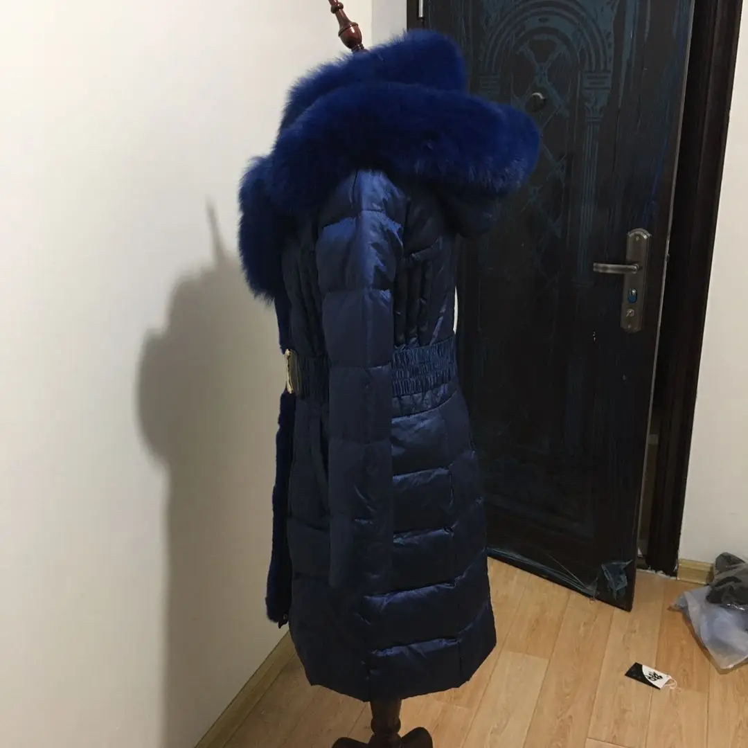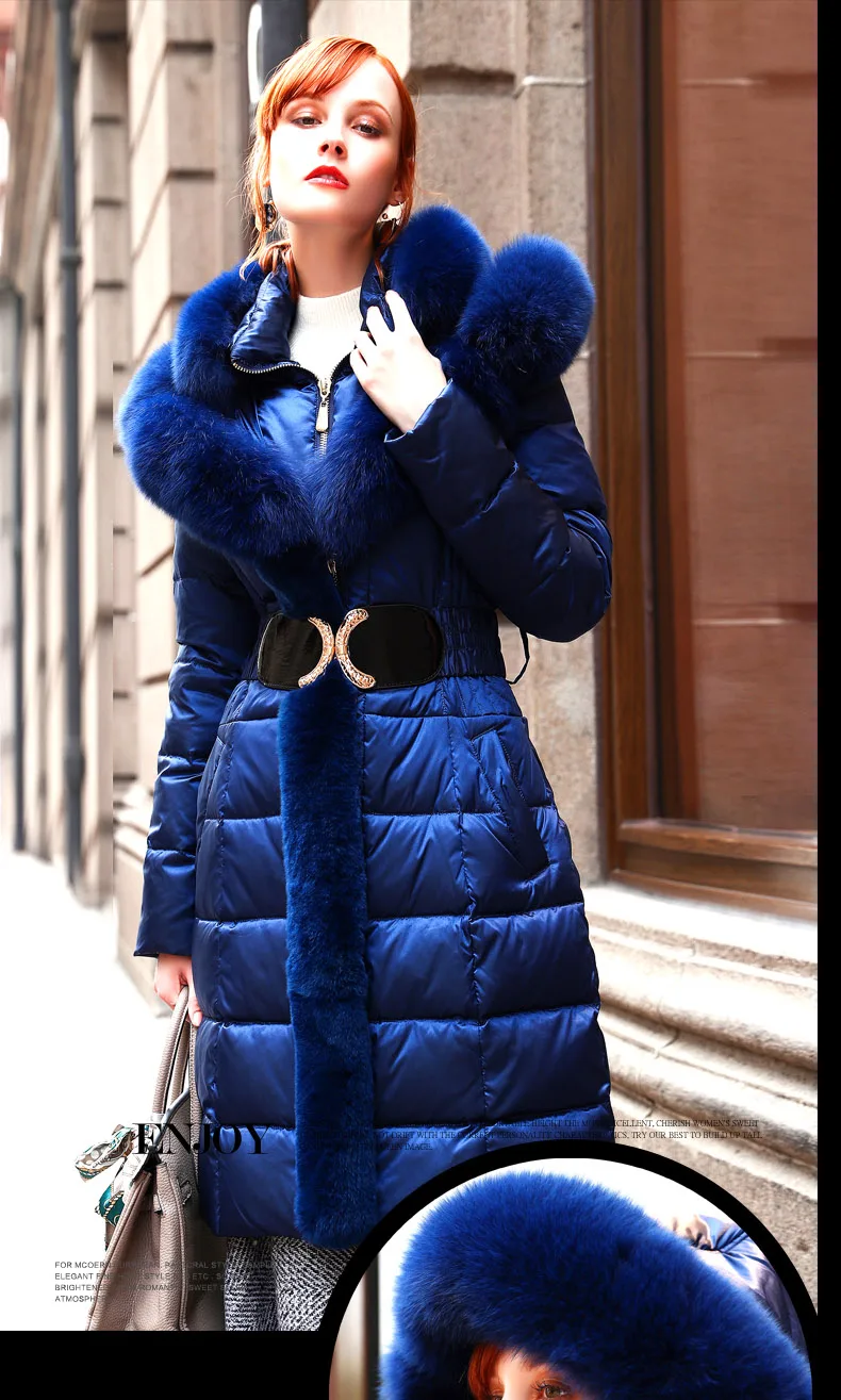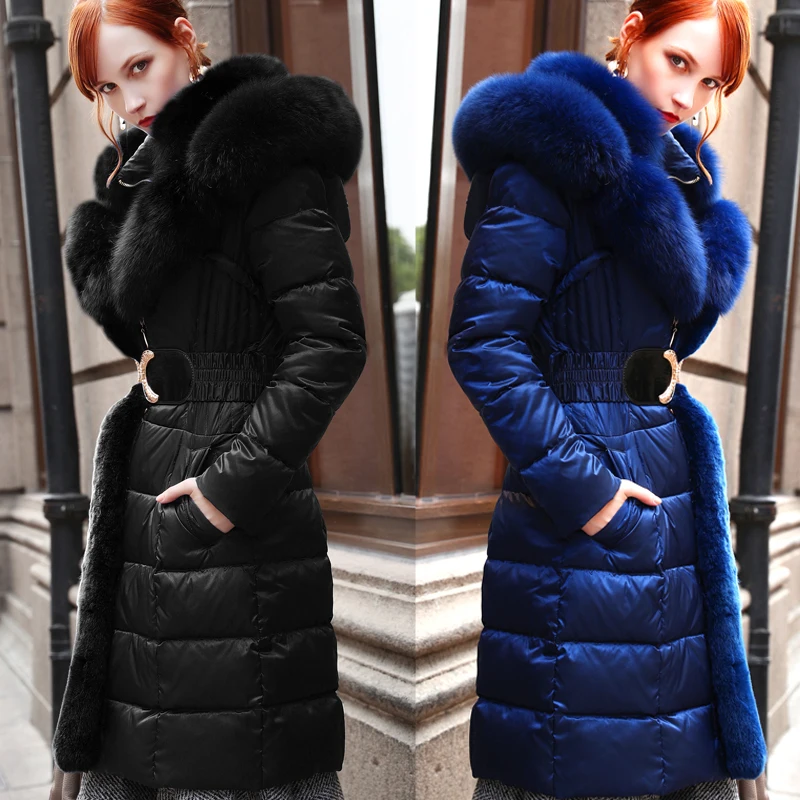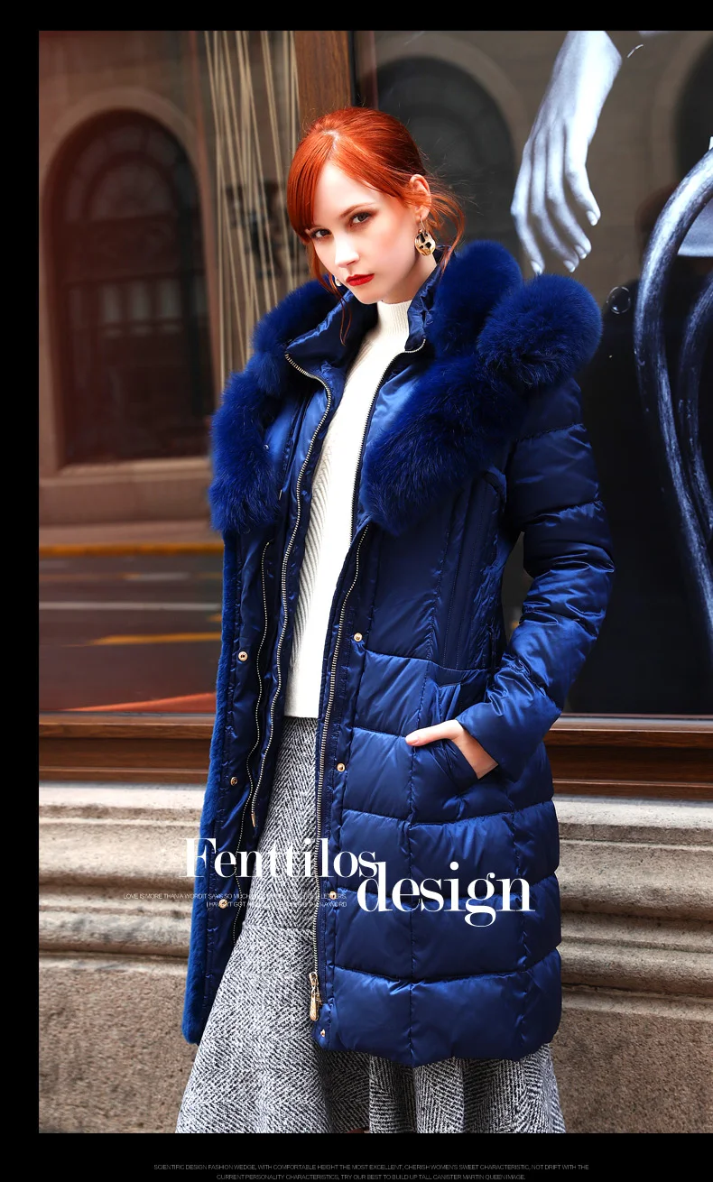 Пуховик женский зимний из натурального Лисьего меха, с капюшоном, F2299