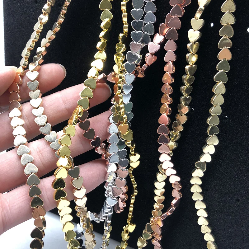WLYeeS розовое золото Серебристые натуральные бусины из гематита в форме сердца, свободные бусины для самостоятельного изготовления ювелирных изделий браслета 6 мм 75 шт. 15 дюймов