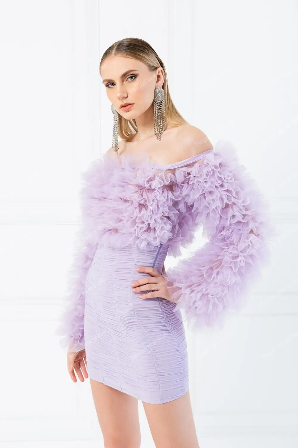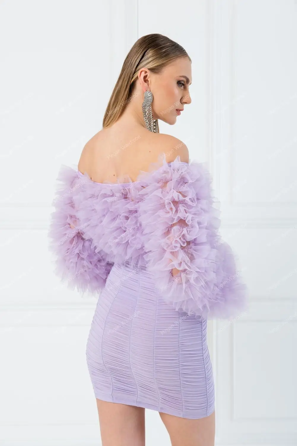 Женский короткий фатиновый пиджак с оборками, черная пышная драпиро...