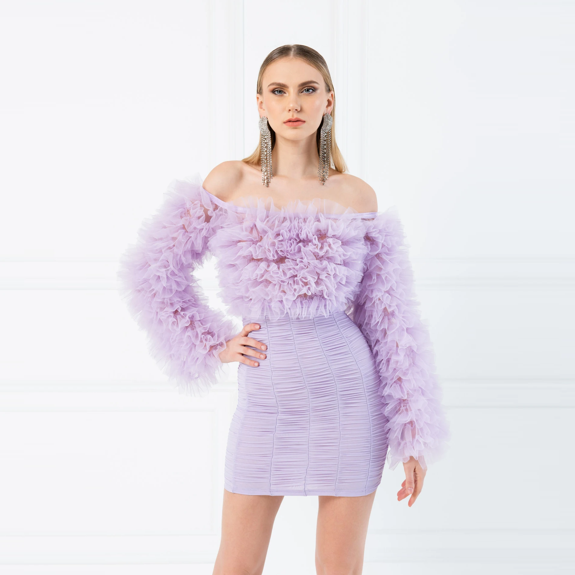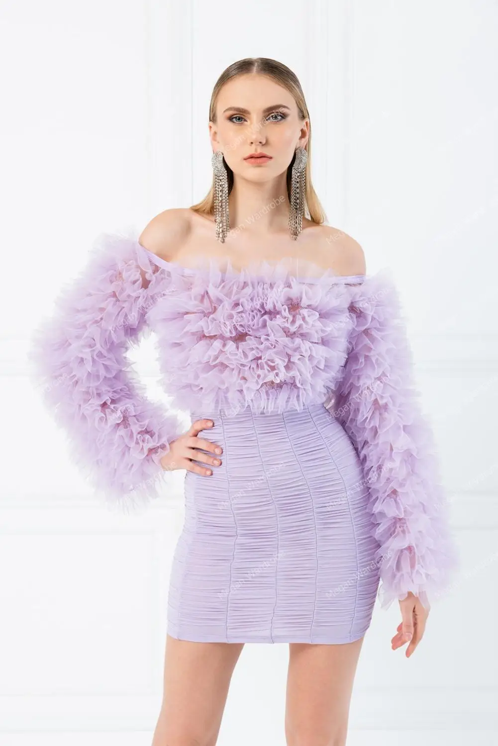 Женская фатиновая блузка с открытыми плечами и рукавом 2020