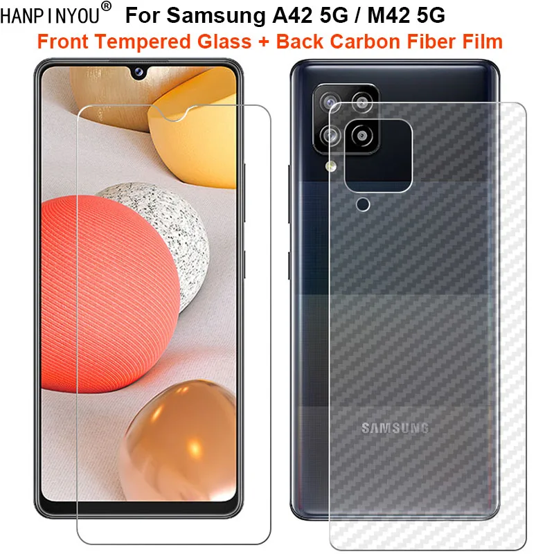 Для Samsung Galaxy A42 / M42 5G 6,6 "1 комплект = мягкая задняя пленка из углеродного волокна + ультратонкое закаленное стекло передняя защита экрана