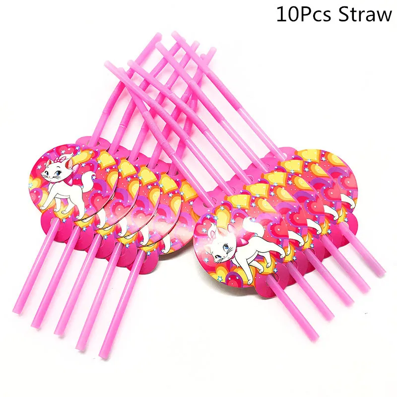 10 шт., вечерние одноразовые бумажные тарелки Marie Cat для соломинки, детский флажок на день рождения, свадебные украшения для детского душа
