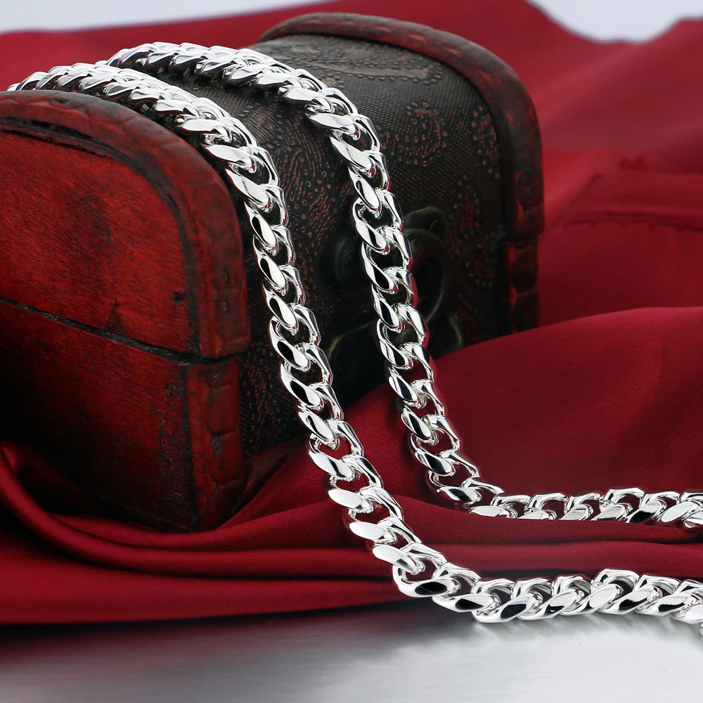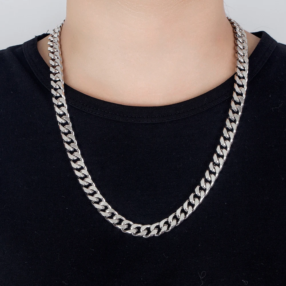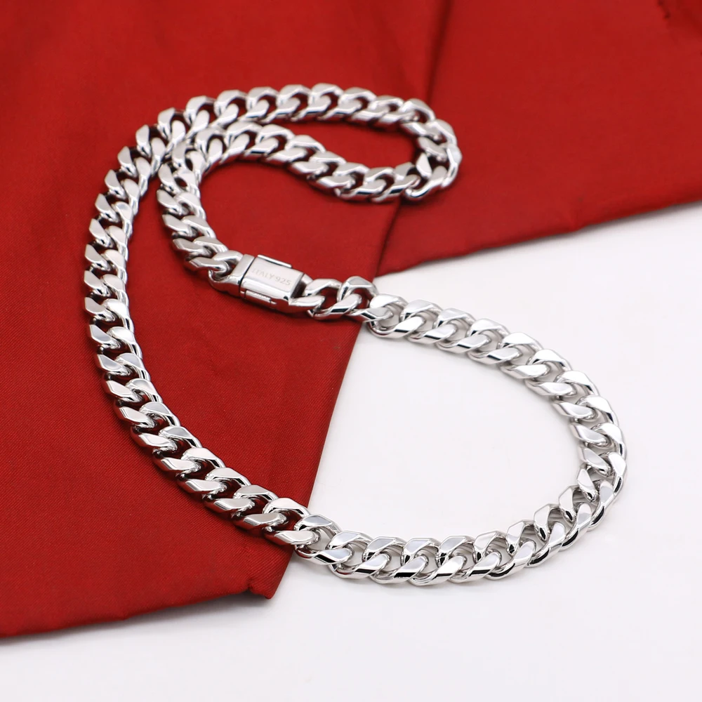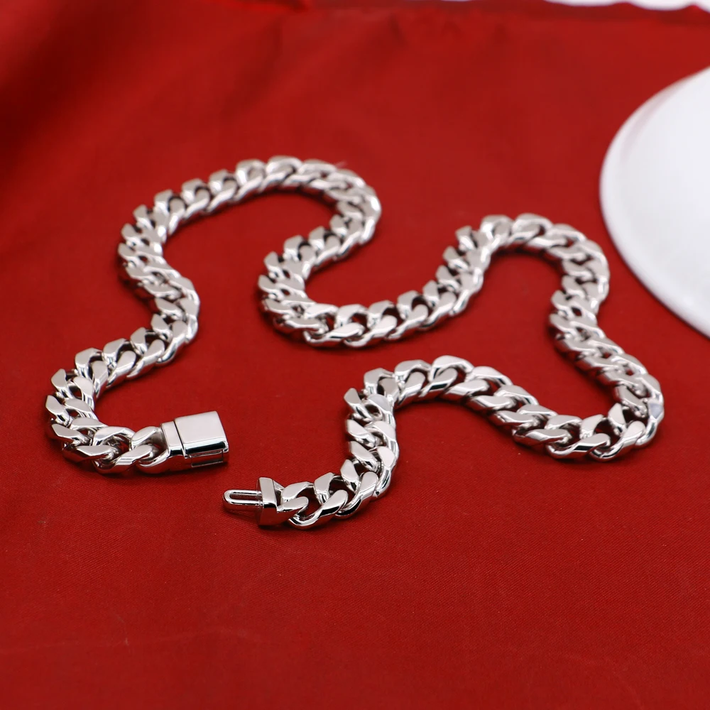 Мужская классическая итальянская цепочка, колье из искусственного серебра 100% пробы, ширина 10 мм, длина 18-24 дюйма, кубинская цепь, мужской чокер в стиле панк, Подарочная бижутерия