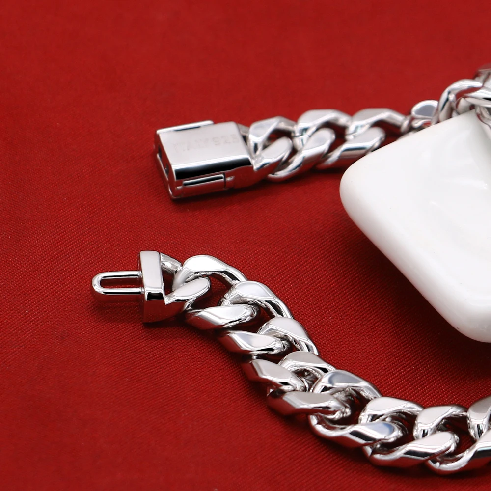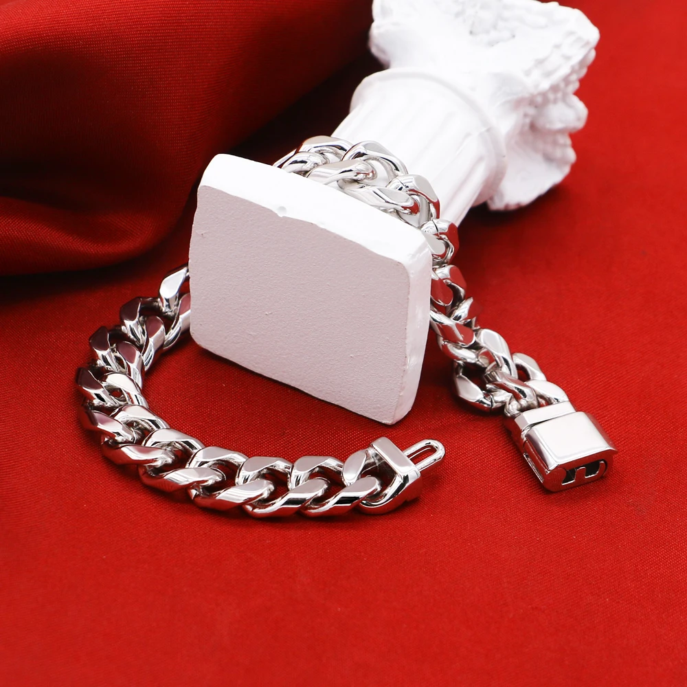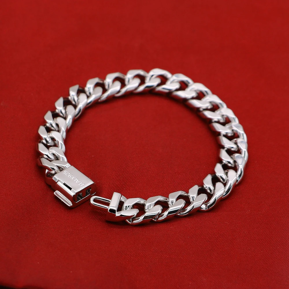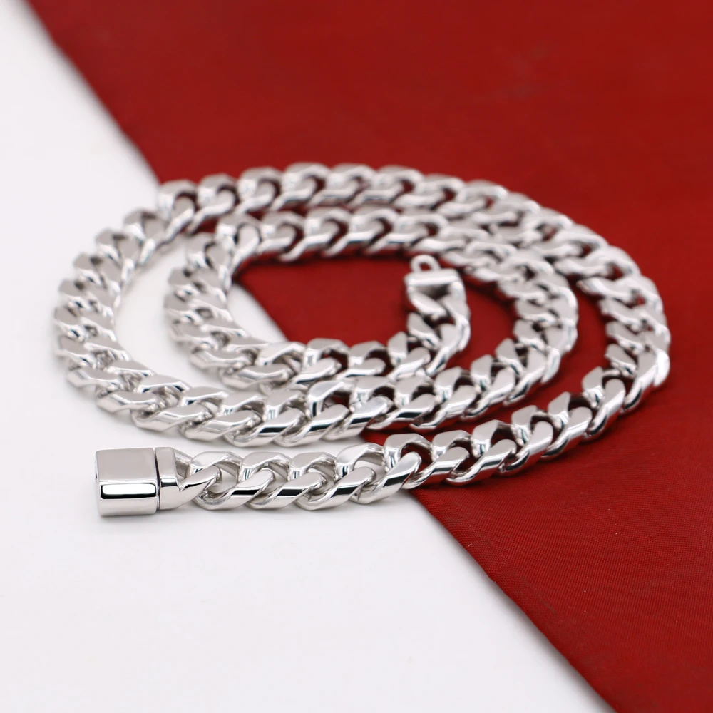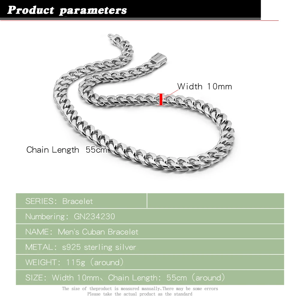 Мужская классическая итальянская цепочка, колье из искусственного серебра 100% пробы, ширина 10 мм, длина 18-24 дюйма, кубинская цепь, мужской чокер в стиле панк, Подарочная бижутерия