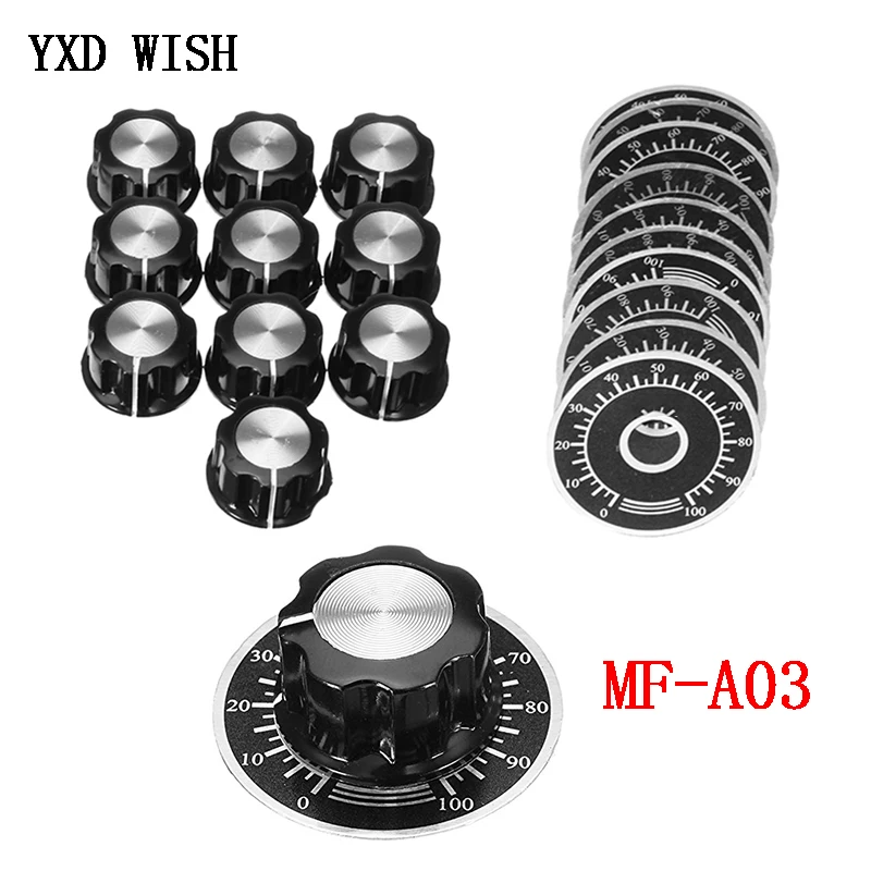 Набор инструментов для измерения потенциометра, 10 комплектов, MF-A03 ручка циферблата + MF-A03 бакелитовая ручка со шкалой, лист, набор цифровых инструментов