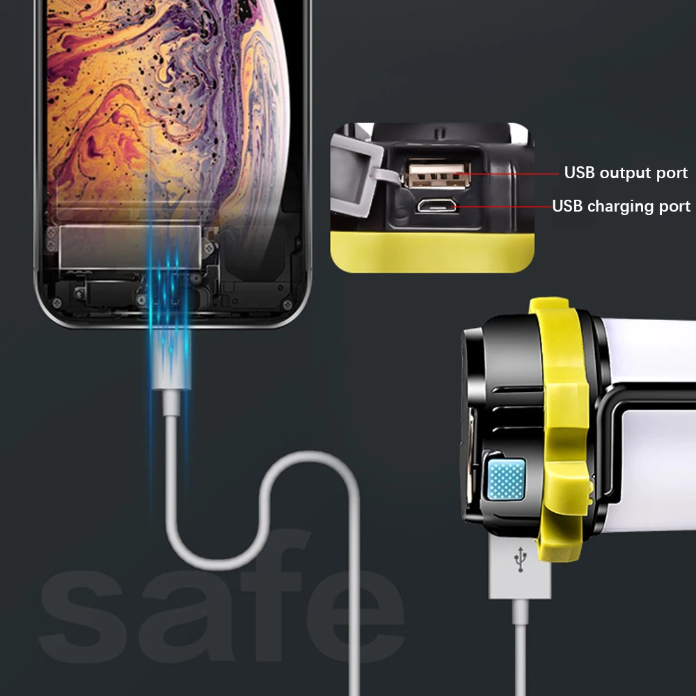 Мощный светодиодный светильник-вспышка супер яркий портативный Точечный светильник USB Перезаряжаемый поисковый светильник для кемпинга фонарь водонепроницаемый фонарь