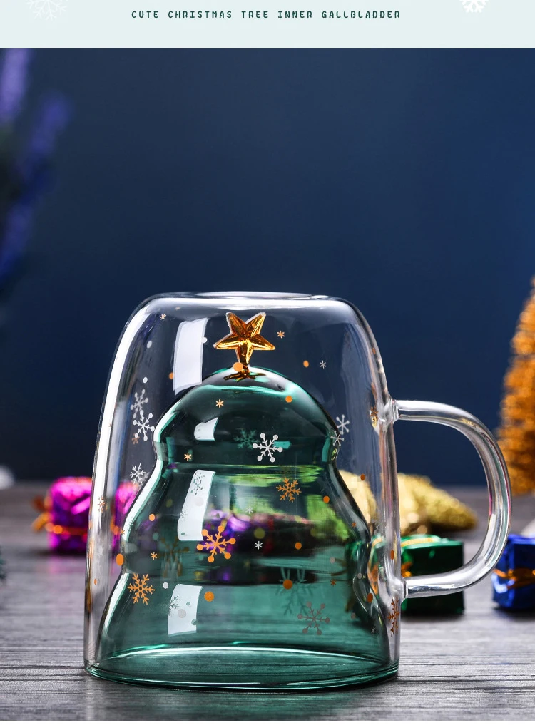 5 милых кружек на рождественскую елку, стакан с двойными стенками, кофейные чашки с силиконовой крышкой, снежинка, звезда, рождественский подарок, стакан для вина, чая, молока, воды