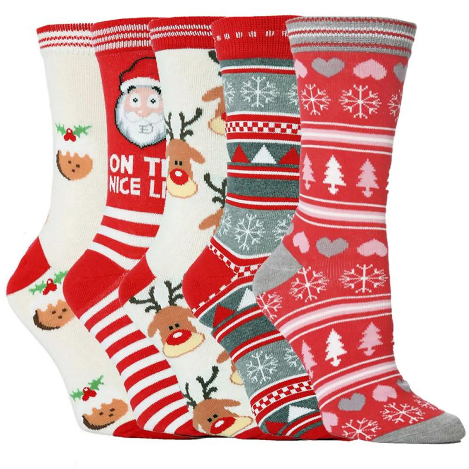 Behogar 5 пар для женщин рождественские носки милые теплые зимние гольфы для детей от двух до четырех носки без пятки среднего размера для Xmas вечерние праздничный костюм поставки новогодние товары подарки на новый г