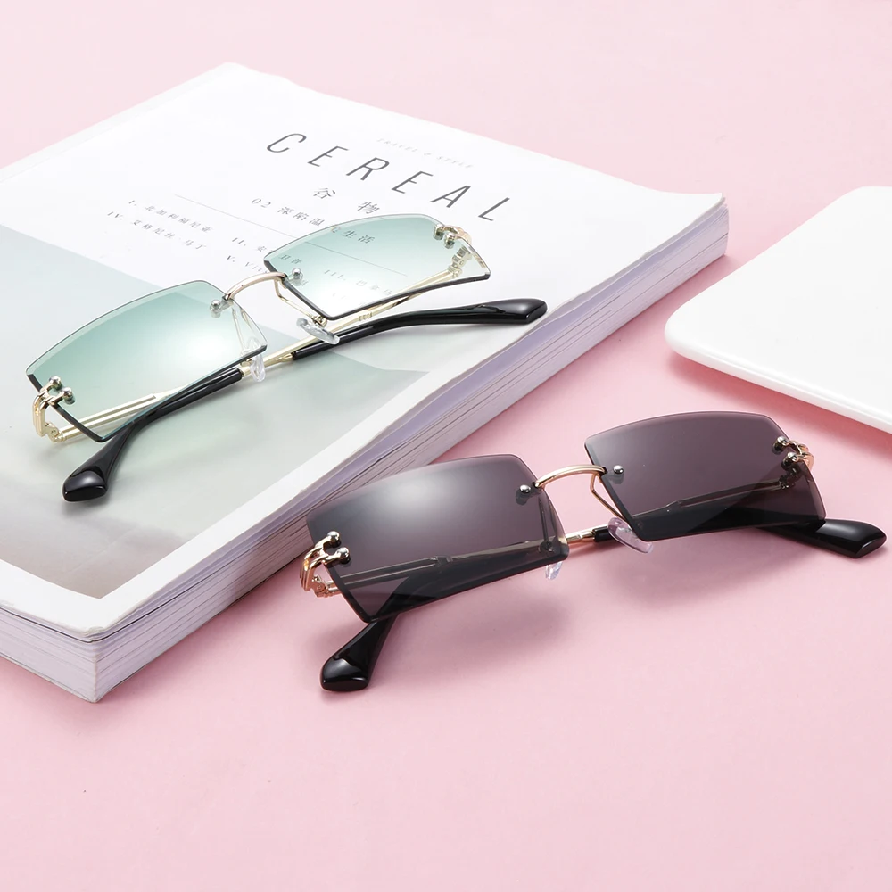 Модные солнцезащитные очки без оправы для женщин 2020 трендовые маленькие прямоугольные солнцезащитные очки для путешествий UV400 Оттенки для мужчин и женщин очки