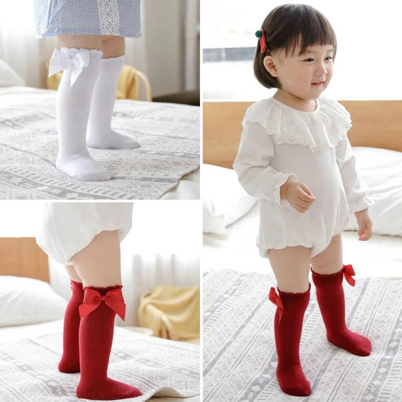 Гольфы для маленьких девочек; Милые однотонные хлопковые дышащие Гольфы с бантом для маленьких принцесс